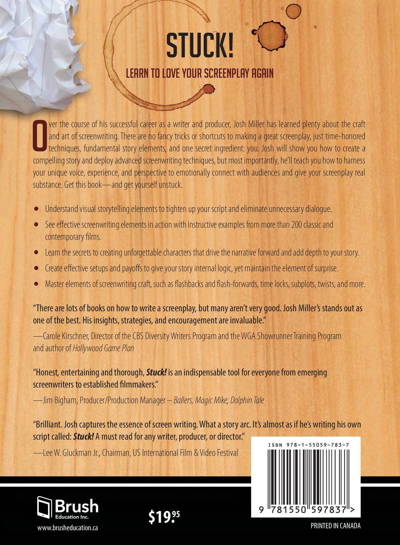 Over the course of his successful career as a writer and producer, Josh Miller has learned plenty about the craft and art of screenwriting. There are no fancy tricks or shortcuts to making a great screenplay, just time-honored techniques, fundamental story elements, and one secret ingredient: you. Josh will show you how to create a compelling story and deploy advanced screenwriting techniques, but most importantly, he’ll teach you how to harness your unique voice, experience, and perspective to emotionally connect with audiences and give your screenplay real substance. Get this book—and get yourself unstuck.