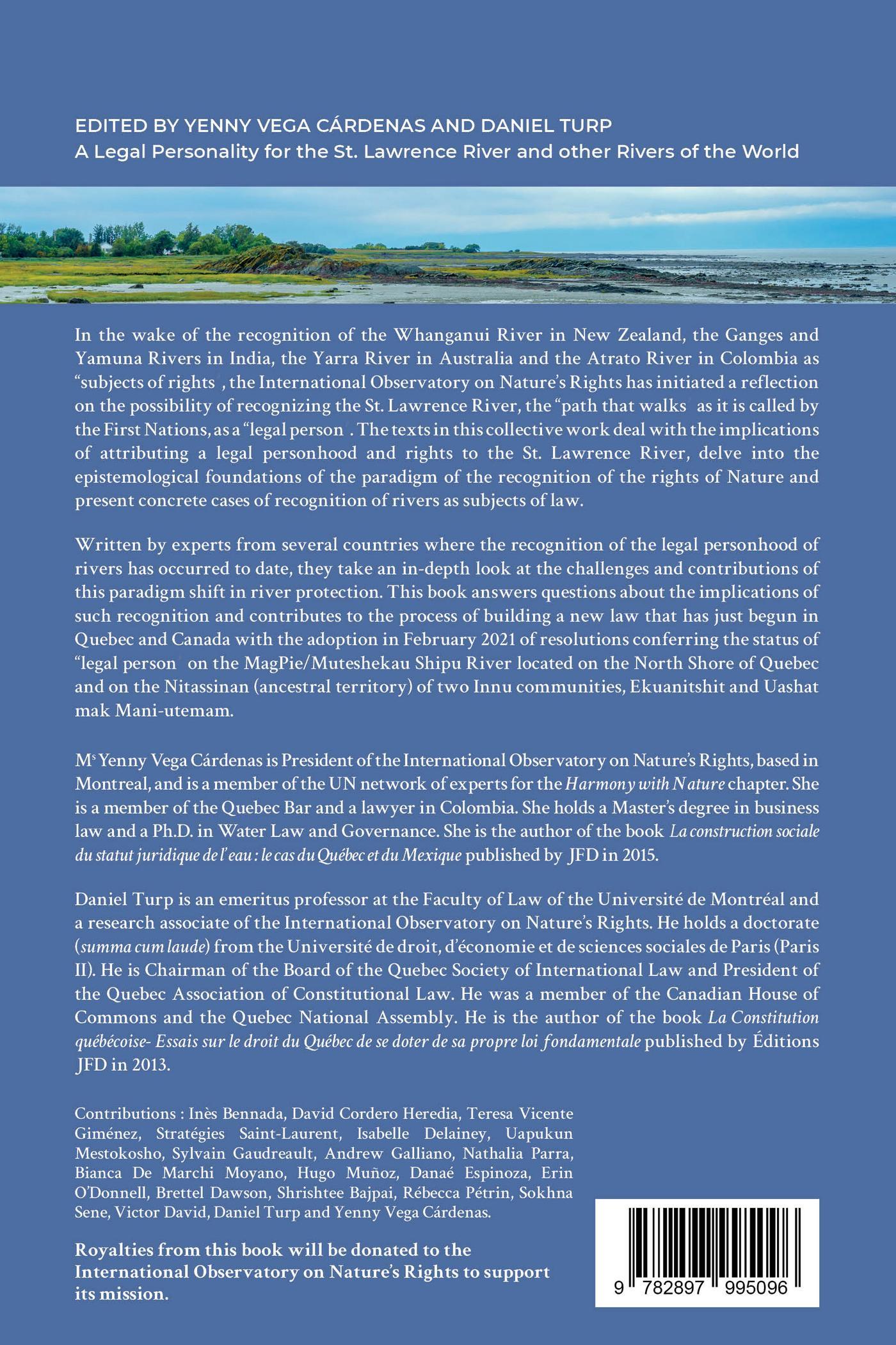 In the wake of the recognition of the Whanganui River in New Zealand, the Ganges and Yamuna Rivers in India, the Yarra River in Australia and the Atrato River in Colombia as «subjects of rights», the International Observatory on Nature’s Rights has initiated a reflection on the possibility of recognizing the St. Lawrence River, the «path that walks» as it is called by the First Nations, as a «legal person». The texts in this collective work deal with the implications of attributing a legal personhood and rights to the St. Lawrence River, delve into the epistemological foundations of the paradigm of the recognition of the rights of Nature and present concrete cases of recognition of rivers as subjects of law.Written by experts from several countries where the recognition of the legal personhood of rivers has occurred to date, they take an in-depth look at the challenges and contributions of this paradigm shift in river protection. This book answers questions about the implications of such recognition and contributes to the process of building a new law that has just begun in Quebec and Canada with the adoption in February 2021 of resolutions conferring the status of «legal person» on the MagPie/ Muteshekau Shipu River located on the North Shore of Quebec and on the Nitassinan (ancestral territory) of two Innu communities, Ekuanitshit and Uashat mak Mani-utemam.Contributions : Inès Bennada, David Cordero Heredia, Teresa Vicente Giménez, Stratégies Saint-Laurent, Isabelle Delainey, Uapukun Mestokosho, Sylvain Gaudreault, Andrew Galliano, Nathalia Parra, Bianca De Marchi Moyano, Hugo Muñoz, Danaé Espinoza, Erin O’Donnell, Brettel Dawson, Shrishtee Bajpai, Rébecca Pétrin, Sokhna Sene, Victor David, Daniel Turp and Yenny Vega Cárdenas.