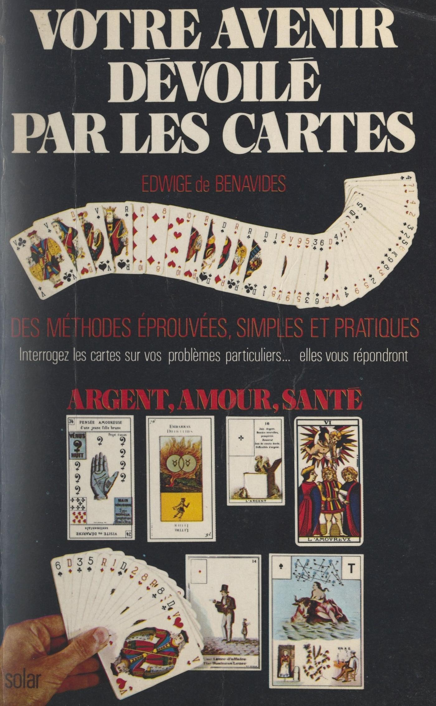 Connaître l'avenir, analyser le présent, se pencher sur le passé pour en tirer des enseignements : autant d'expériences passionnantes. Les voici à la portée de tous, grâce à ce livre, qui donne des méthodes simples et précises pour interroger les cartes, et savoir en lire les réponses.Depuis la plus haute Antiquité, les cartes (tarots et cartes à jouer) ont été considérées comme le lien entre la Terre et le Ciel. Leur lecture — autrefois réservée aux mages, devins et "voyants" — établissait la communication entre le Maître de la Destinée, le Dieu invisible, et les êtres humains. Aujourd'hui, cette connaissance est ouverte à tous ceux qui en respecteront le code clairement exposé dans ces pages. Chacun peut être le consultant, celui qui interroge, ou l'interprète, celui qui déchiffre les cartes et dévoile leur signification. Un jeu fascinant, certes, mais plus que cela : la possibilité d'agir sur son destin car, informé des événements qui l'attendent, le consultant fera intervenir sa volonté, sa force intérieure pour accéder à une vie meilleure.« Votre avenir dévoilé par les cartes » se divise en trois grands chapitres : les cartes à jouer ordinaires, les cartes divinatoires illustrées, et les tarots.