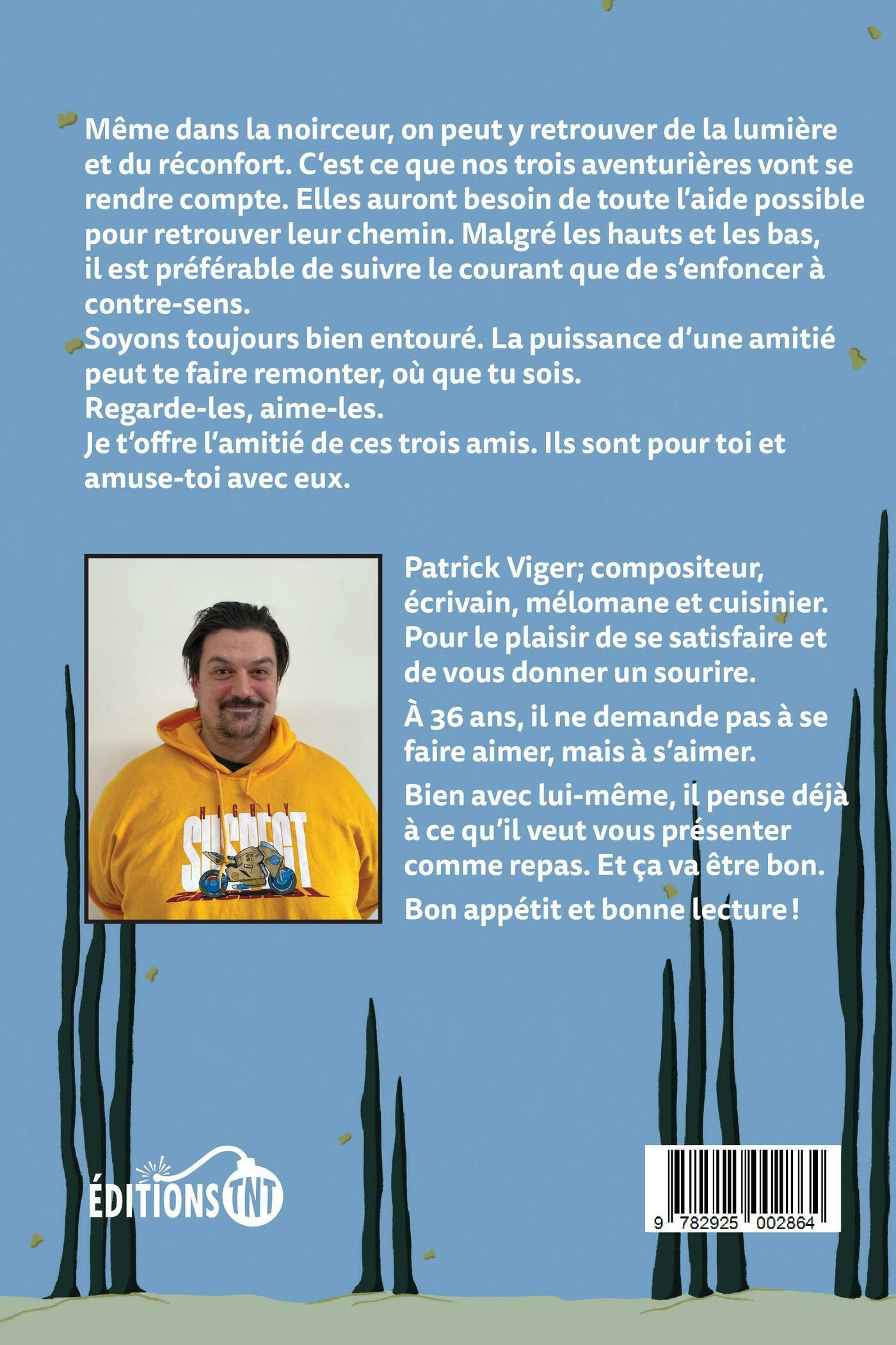 Même dans la noirceur, on peut y retrouver de la lumière et du réconfort. C’est ce que nos trois aventurières vont se rendre compte. Elles auront besoin de toute l’aide possible pour retrouver leur chemin. Malgré les hauts et les bas, il est préférable de suivre le courant que de s’enfoncer à contre-sens. Soyons toujours bien entouré. La puissance d’une amitié peut te faire remonter, où que tu sois.Regarde-les, aime-les.Je t’offre l’amitié de ces trois amis. Ils sont pour toi et amuse-toi avec eux.Patrick Viger; compositeur, écrivain, mélomane et cuisinier. Pour le plaisir de se satisfaire et de vous donner un sourire.À 36 ans, il ne demande pas à se faire aimer, mais à s’aimer. Bien avec lui-même, il pense déjà à ce qu’il veut vous présenter comme repas. Et ça va être bon.Bon appétit et bonne lecture !