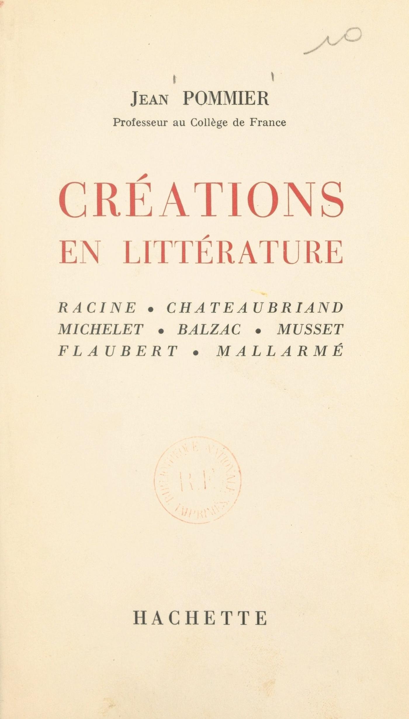 Racine, Chateaubriand, Michelet, Balzac, Musset, Flaubert, Mallarmé