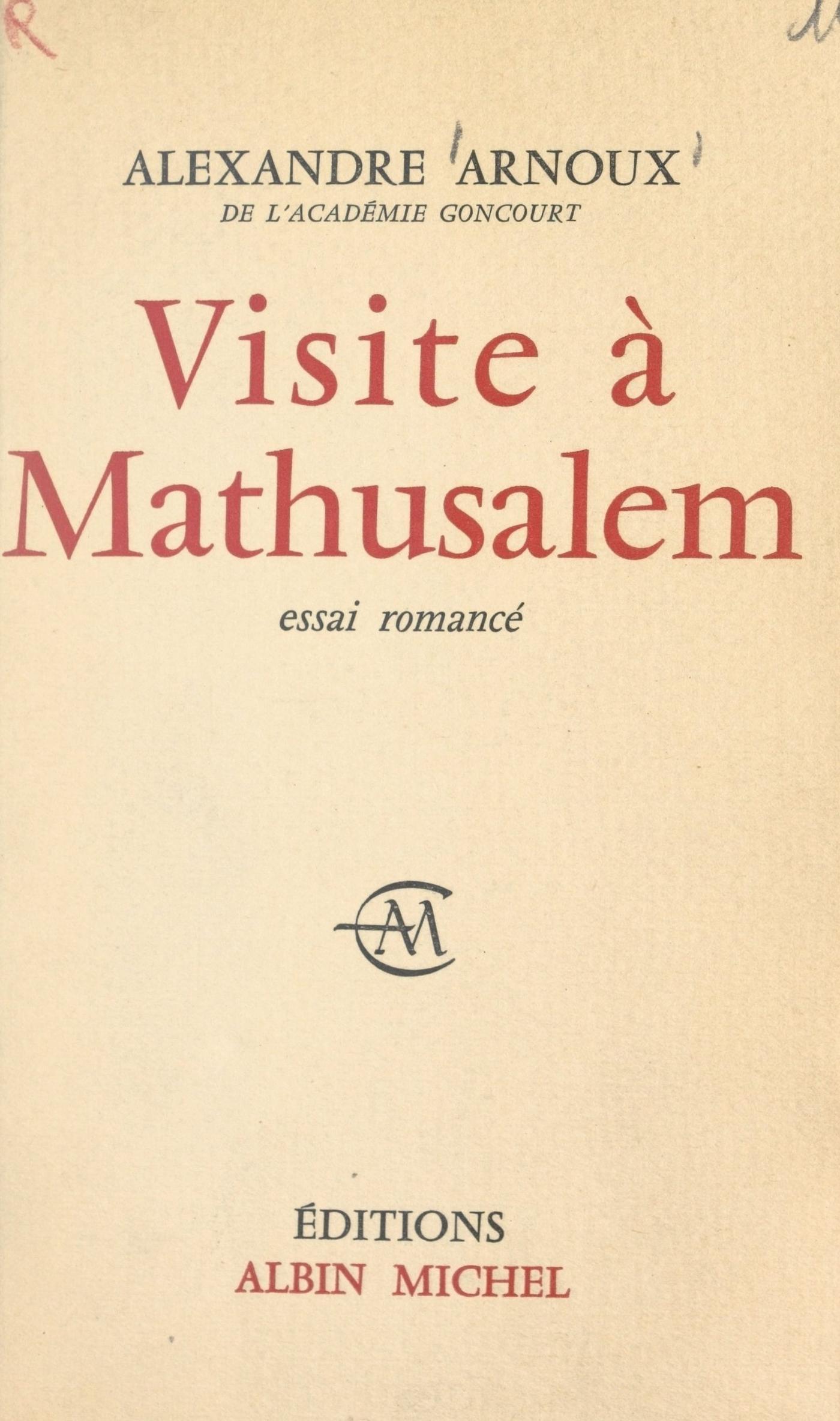 Les questions qui concernent le temps n’ont sans doute jamais autant qu’aujourd’hui obstinément hanté l’esprit des hommes. Préoccupation d’une instance universelle et continue, qui a envahi peu à peu tous les domaines de la pensée, les mathématiques, la physique, le roman. Comment aurais-je éludé cette obsession générale, cette affection qui plonge d’antiques racines dans notre espèce, et que notre époque a singulièrement enrichie, nuancée, renouvelée et répandue ? Aussi ai-je rêvé, puisque le temps se révèle à nous tout d’abord, avec amertume et acuité, par notre vieillissement, aussi ai-je rêvé, tenté même d’aller m’informer aux sources, d’interroger les compétences et, parmi elles, celle indiscutable, de Mathusalem, dont la longévité légendaire est passée en proverbe et à qui le temps n’a pas ménagé les saisons, a fourni le plus vaste champ d’expérience dont un mortel de notre race ait jamais pu disposer. Ce voyage, ce rêve, cette tentative d’interview du Patriarche vénérable et d’une sagesse prodigieusement informée, tout cela aurait pu composer en fin de compte une sorte de relation ou de roman d’aventures. Toutefois, il y fallait de si longues préparations, le sujet exigeait tant de notes complémentaires, que les méditations diverses, les observations et appendices nécessaires eussent risqué, et ils n’y manquent pas sans doute en dépit de mes précautions, d’encombrer et de noyer la trame principale, le sujet primitif. Réflexion faite donc, j’ai dû renoncer, ne voulant duper ni mon lecteur ni moi-même, à appeler ce petit ouvrage roman. D’autre part, si je le nomme essai, n’aura-t-on pas encore le droit de m’accuser de tricherie ? Et non sans raison, puisque je confesse n’avoir pas été chiche de fables et de contes ; ma nature m’y porte et j’ai cédé avec une très active nonchalance à ce penchant fâcheux. Alors, pour tout concilier, je choisis un moyen terme, un peu lâche peut-être mais honnête. Essai romancé, voilà le sous-titre convenable, je pense, à ces songes tantôt débridés et tantôt scrupuleusement exacts, dont l’originaire Visite à Mathusalem se contente de constituer le noyau assez dense quoique fort enveloppé et débordé souvent. Je ne trompe personne et je m’accorde mes coudées franches. Je n’en demande pas plus. A. A.