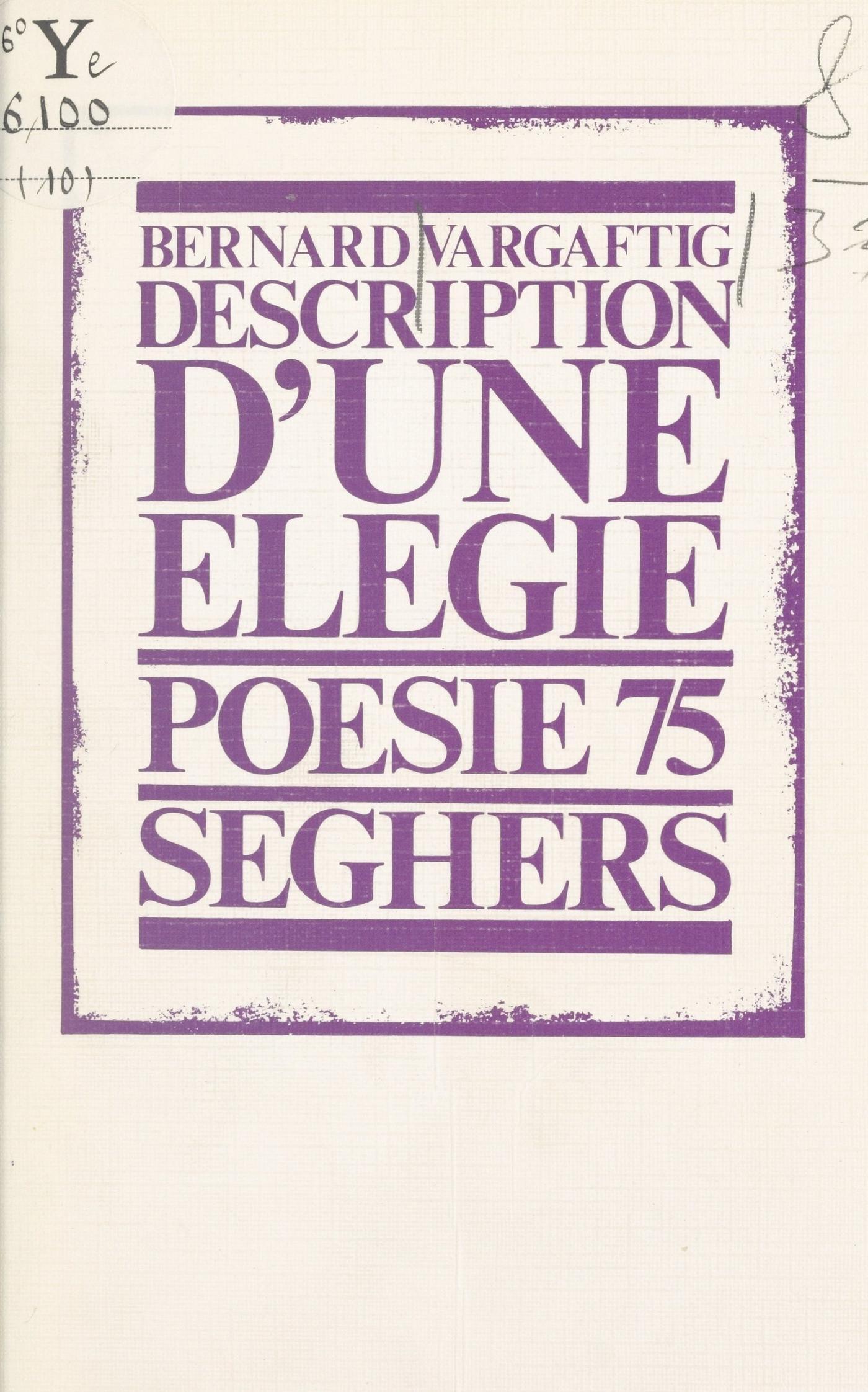Né en 1934, Bernard Vargaftig a publié jusqu’ici deux recueils poétiques. Il y disait, en mots de tous les jours, la vie, la fatigue “quand tout pend / Comme un lainage laissé sur le dos d’une chaise”. Le ton, à présent, se fait plus grave et une musique sourde s’insinue dans les veines du poème, dans le triple volet de cette description d’une élégie. Les mots ne bougent pas, mais la vie, entre parole et silence, entre chant et brisure, le poème se déroule de tout son poids. “Moi, j’aime ça, ce langage haché comme la douleur”, écrivait Aragon, “une richesse de vocabulaire qui n’a pas pour base le mot rare, mais le renouveau de vocables pareils à ces fleurs, dont les graines longtemps plus ne germèrent parce que des ombrages les en empêchaient et resurgissent de la terre après un incendie de forêt...”