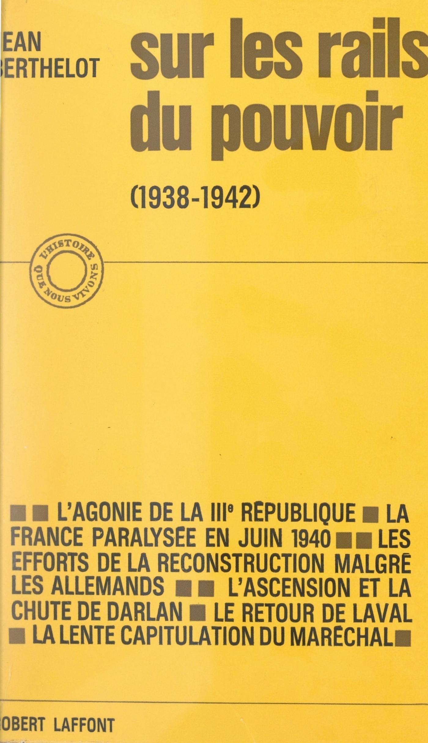 À 43 ans, par la seule vertu de sa qualité d’éminent spécialiste des transports, Jean Berthelot s’est trouvé ministre du maréchal Pétain, peu après l’armistice de juin 1940. Une France exsangue, brisée, démantelée, lui tombe sur les bras : il faut relancer les ponts, raccorder les voies ferrées, faire rouler les trains, rétablir les routes, camoufler le matériel que les Allemands veulent confisquer, protéger les cheminots contre les représailles de l’occupant. Après vingt-cinq ans de silence, les souvenirs qu’il nous livre avec lucidité constituent un témoignage important sur ces deux premières années de l’occupation où un grand nombre de Français mettaient encore tout leur espoir dans le vainqueur de Verdun. Jean Berthelot, sans passion, donne le point de vue du technicien confronté aux amères réalités de la politique. A travers lui, nous entrons dans le secret de la faiblesse des derniers gouvernements de la IIIe République. Nous assistons au drame de mai et juin 1940. Nous sommes tantôt à l’Hôtel du Parc à Vichy, tantôt sur toutes les routes de l’Empire où des hommes s’efforcent de maintenir l’essentiel. Sur les intrigues de Laval, sur les actions ambiguës de l’amiral Darlan, sur l’action du général Weygand, notamment, ce livre apporte une série de précisions qui manquaient encore à l’historien.