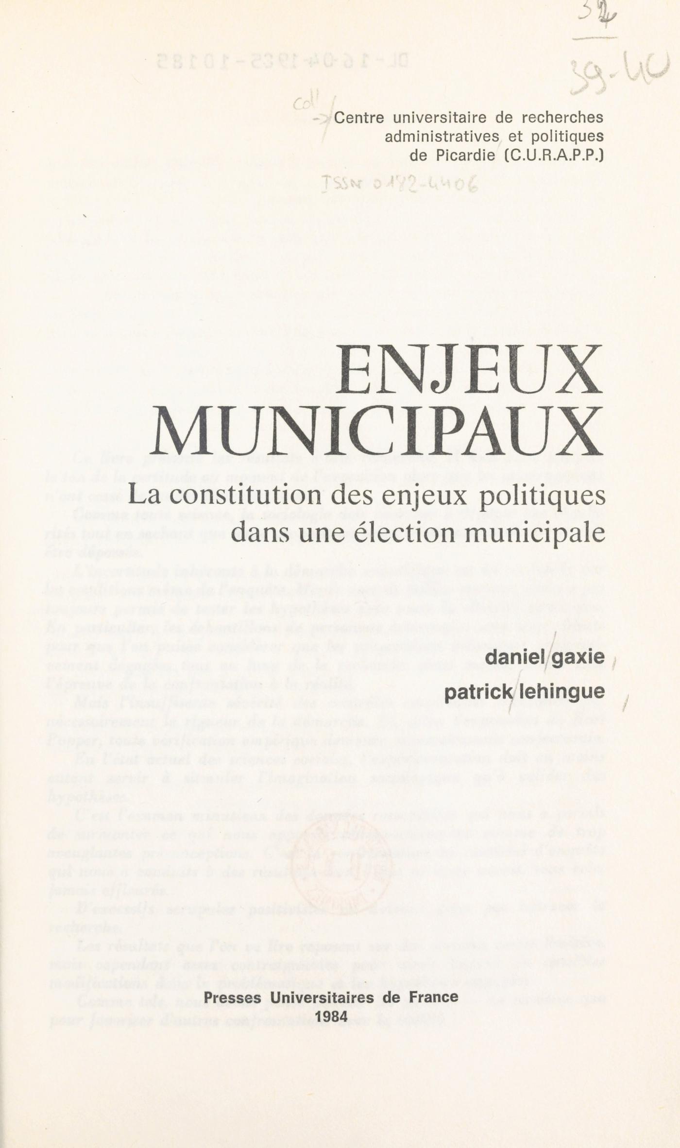 Collection : Publications du Centre universitaire de recherches administratives et politiques de Picardie