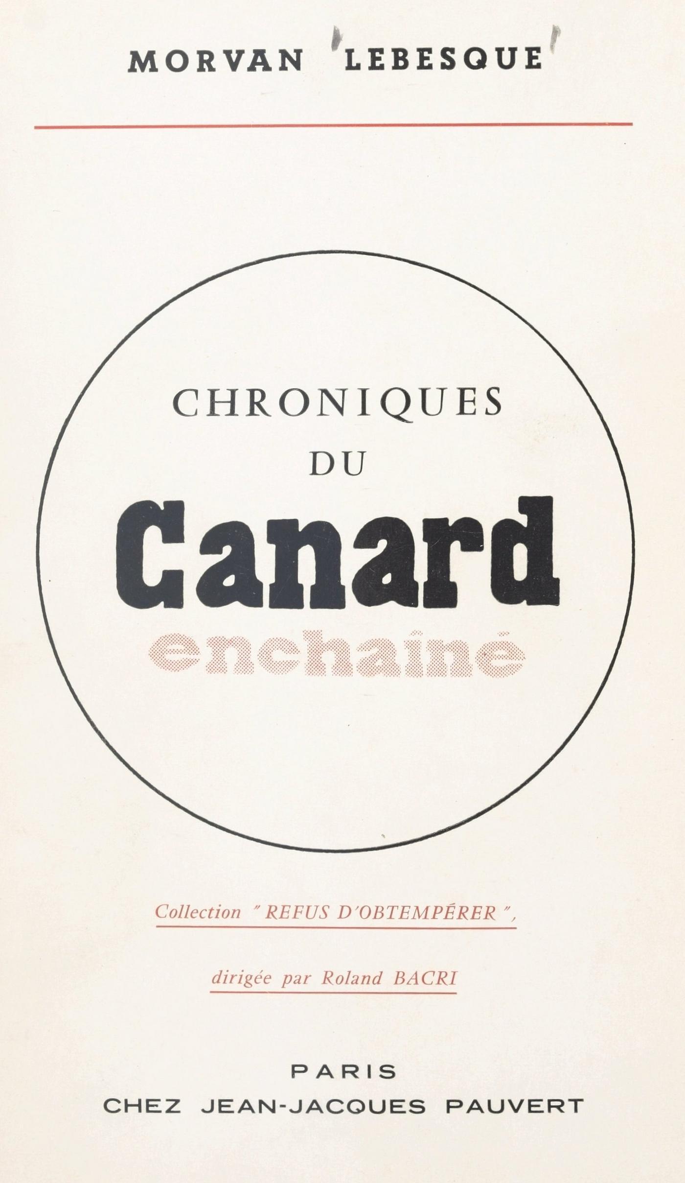 Né à Nantes “quai Barbin, aujourd’hui quai Barbusse (les quais de Nantes se déclinent, comme disait Paul Fort) au bord de l’Erdre, la plus belle rivière de France, dans une maison ouvrière toute résonnante des assiettes que les ménages se jetaient joyeusement à la tête le samedi soir”. Élève-boursier au lycée de la ville, condisciple de Julien Gracq, le futur romancier surréaliste. C’est là qu’à seize ans un de ses camarades change son prénom (Morvan, en breton, est l’équivalent de Maurice). Par jeu d’abord, puis par habitude, il garde ce demi-pseudo. Vient à Paris, y fait plusieurs métiers. Journaliste, Critique de théâtre. En 1952, Tréno, rédacteur en chef du Canard Enchaîné lui confie une rubrique de polémique. “Surtout, prends bien le ton du Canard”, lui conseille-t-on de tous côtés. “Pourquoi ne pas prendre plutôt le ton Morvan Lebesque ?” répond-il. En 1960, les articles de Morvan Lebesque sont lus par les 350 000 acheteurs hebdomadaires du Canard. Certains sont ronéotypés, imprimés sous forme de tracts, distribués dans des écoles ou affichés comme “journal mural” dans des ateliers. Une université américaine les a traduits et inscrits à son programme. On estime qu’en réalité, grâce à cette diffusion bénévole, le nombre de ses lecteurs dépasse le million. Morvan Lebesque a également publié un roman : Soldats sans Espoir (Laffont, 1947) et fait jouer quatre pièces de théâtre : La Découverte du Nouveau Monde (d’après Lope de Vega), Venise Sauvée (d’après Ottway), Les Fiancés de la Seine et L’Amour parmi nous. Il vient de terminer pour les éditions Rowohlt, de Hambourg, un ouvrage sur Albert Camus (trad. Guido Meister). Il prépare actuellement une pièce, un roman et un recueil de nouvelles : Parler à quelqu’un.