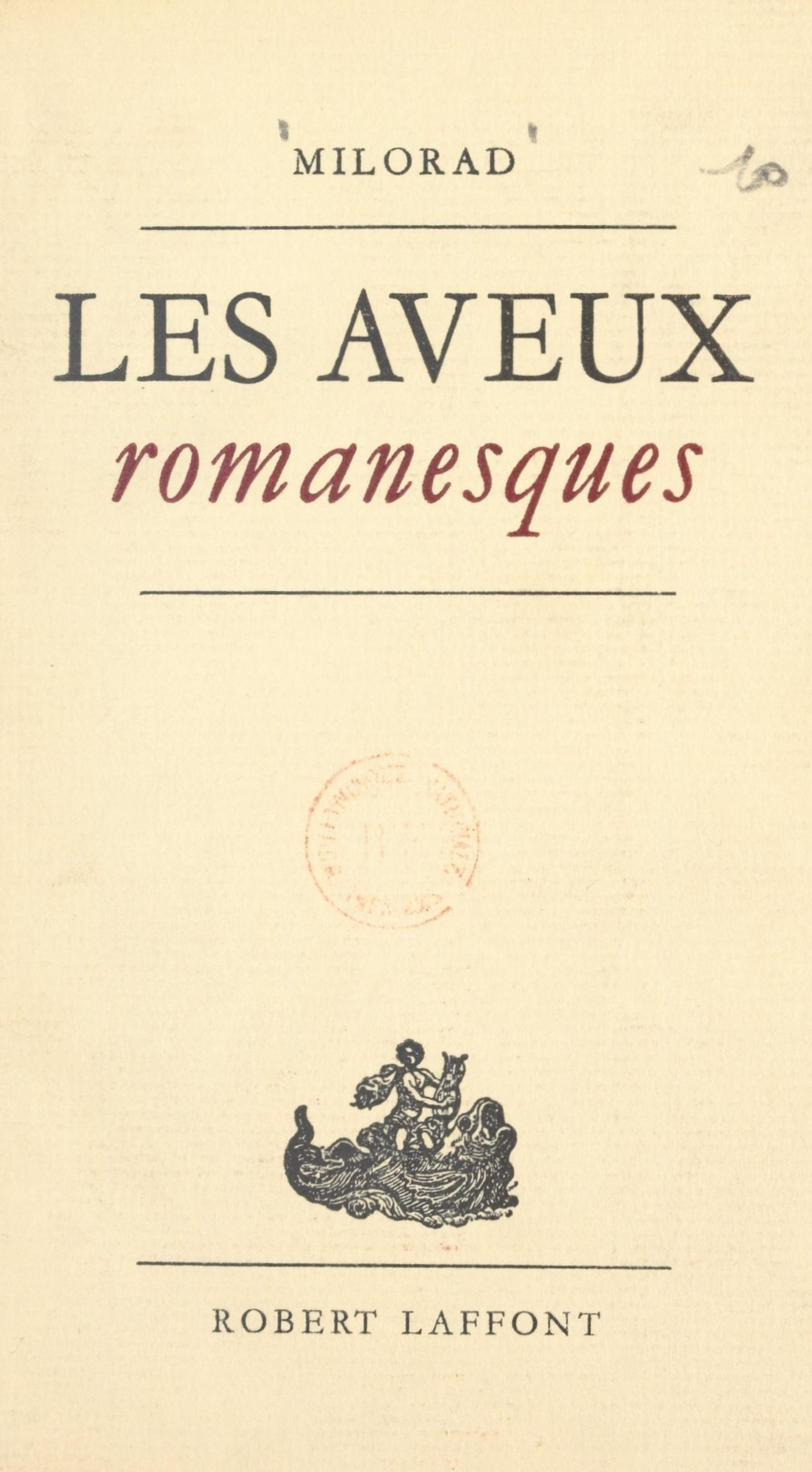 À travers les cinq textes qui composent ce livre, quels qu’en soient les héros, c’est toujours la même voix qui se fait entendre. Celle d’un homme qui éprouve de façon aiguë la « difficulté d’être » — difficulté de vivre, d’aimer, d’être aimé — et qui ne trouve de salut que dans la création. Les deux personnages des Aveux romanesques, le narrateur de L’École des veufs, l’écrivain des Autographes, la dame à la licorne, cherchent tous à dépasser la platitude de leur condition ou la fatalité de la mort par l’œuvre, le poème. Il s’agit toujours pour eux d’élever le tombeau qui gardera la mémoire de leurs amours et de leurs passions — et peut-être surtout d’eux-mêmes. Usant tour à tour du réalisme le plus cru et de l’expression la plus délicate, Milorad donne avec Les Aveux romanesques un livre d’une étrange beauté, d’une pureté troublante — un livre qui annonce une œuvre véritablement « singulière ».