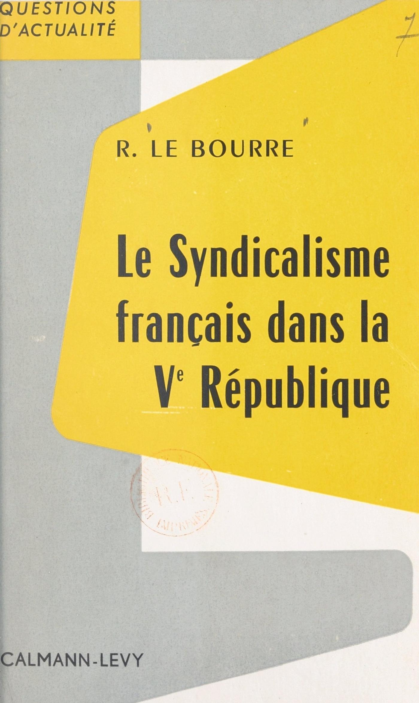 Raymond Le Bourre est l’enfant terrible du syndicalisme français. Son ardeur de militant fit de lui, vers sa vingtième année, un communiste. Mais ayant vu d’assez près et assez bien comment se comportaient les hommes de Moscou, il rompit définitivement avec le P.C. et fut, en 1947, l’un des principaux acteurs de la scission qui donna naissance à la C.G.T.-F.O. dont il est secrétaire confédéral depuis 1952. Ce n’est pas seulement au communisme qu’il en a, c’est à tous les vieux préjugés révolutionnaires, à l’idéologie glorieuse mais désuète du syndicalisme de 1905. A Vienne, au congrès de l’Internationale syndicale libre, en 1955, il fait scandale en dénonçant les facilités d’un « anticolonialisme » qui, sous le couvert d’indépendances prématurées et de nationalismes agressifs, livrerait des peuples sans défense à l’anarchie, à la misère, au communisme. Aujourd’hui, dans Le Syndicalisme français dans la Ve République, c’est à la routine doctrinale des syndicats qu’il s’en prend. La Ve République diminue le rôle des partis : Aux organisations syndicales d’occuper la place laissée libre et de prendre en main une partie des pouvoirs économiques et sociaux que le Parlement avaient usurpés. Mais pour cela, il faut renvoyer aux magasins des accessoires le futurisme prétendument révolutionnaire, et travailler dans le présent, dans le concret. Depuis 1955, les accords de salaires, la création des caisses de retraites complémentaires, l’institution de l’allocation complémentaire de chômage, etc., ont montré les possibilités immenses ouvertes à l’action syndicale constructive. De ce nouveau style, Raymond Le Bourre se fait théoricien — un théoricien qui n’oublie pas le polémiste — et ce n’est pas sans raison qu’il invoque à diverses reprises l’exemple de Proudhon. Il est, comme lui, un réformiste révolutionnaire.