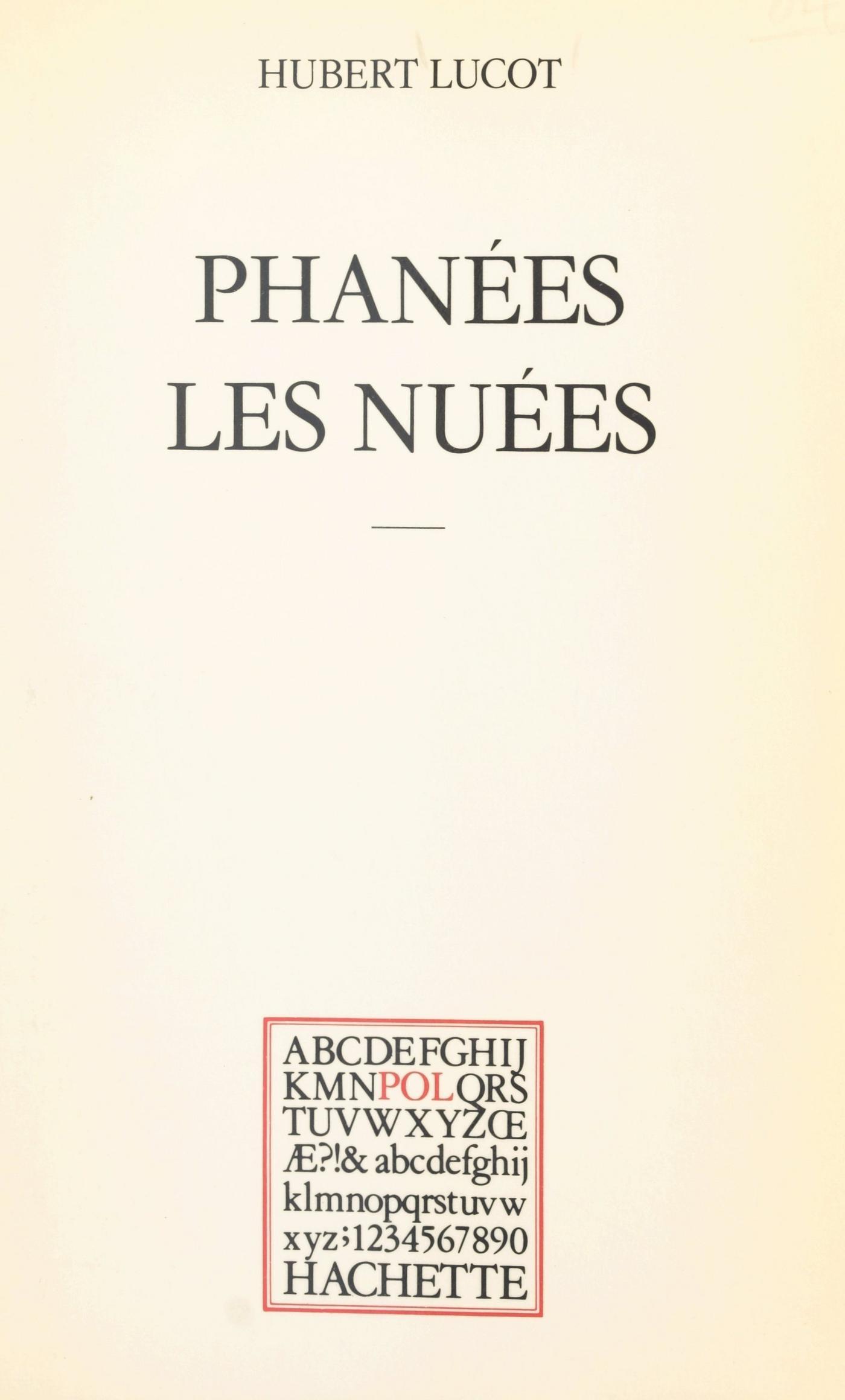 Phanées les nuées (Φ) ? Toute une vie, une histoire : août 75 - août 76 ; Second Empire, l’âge féodal,.... “nos” jours. Φ est la vie du livre à faire qui se fit et travaille. Qu’étaient-ils donc les proches, personnages de mon livre, vifs, morts, honnis, omis ? Firent-ils l’Espagne ? De quelle guerre s’agit-il, quelles guerres admettons-nous ? “Rude à dire”, “forêt obscure”, une comédie sociale assez lâche, discrète (discontinue), places, fonctions bougent, “j’écris Phanées” dis-je à l’Une (conversation, sonate, auberge du Dah-Zhaïn), Φ qui se couvre et découvre (time/weather) dans une parcelle de l’Univers, après coup des rencontres demeurent, en mes papiers, là est ma lecture du roman que tous vivent (disent) dans un système difficile inaudible sur ces bords que nos pratiques rapprochent, appels au secours que quelqu’un a perçus, percevra, en une époque qui (n’)est la nôtre. Φ considère ma vie écrivante, s’attache à ce qui de la vie peut devenir écriture, vécu codé, répétitif, le nouveau dans les termes et les terres de l’ancien, la mort est un mal au pied vague à l’âme, le mal des amputés que complète un fantôme. Temps retrouvé ? Incorporé ! Avec le plus, avec le manque. Le “Connais-toi au monde” est révolutionnaire. Avril 1981