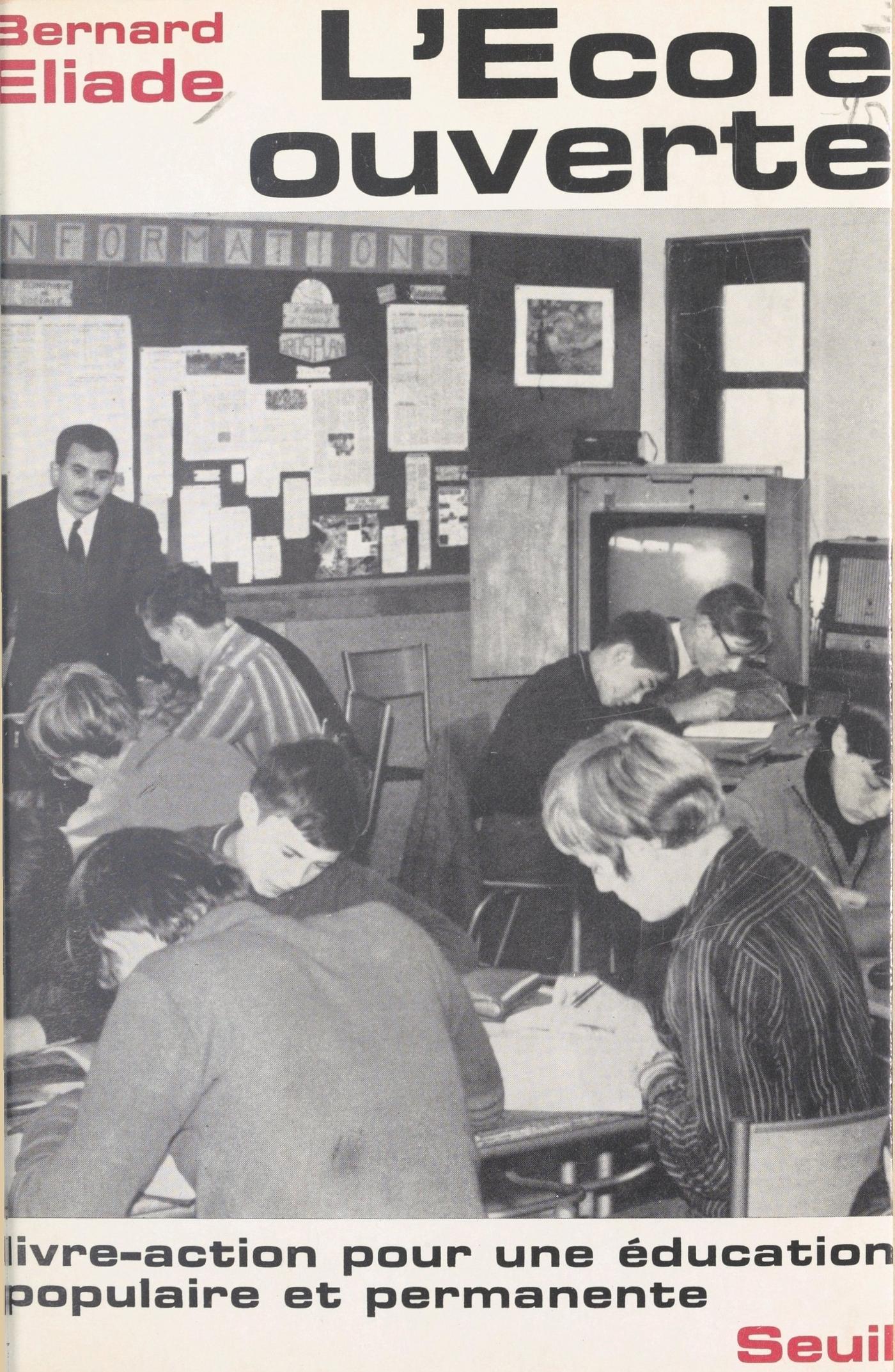 En France, comme ailleurs, le problème primordial, qui recouvre tous les autres, est d’ordre pédagogique : il faut que l’École devienne l’affaire de tous, qu’elle s’ouvre au monde extérieur, qu’elle y prépare les futures générations actives en laissant pénétrer la vie dans ses murs. Tel est l’esprit des expériences menées et décrites ici par un jeune professeur de Lettres de 31 ans dans un collège d’enseignement technique de province. Mais Bernard Éliade ne se limite pas à l’énumération de critiques sans tendresse et de tentatives qui, tout en ayant le mérite d’exister, restent cependant isolées. Il propose un plan de rénovation simple, réalisable par paliers successifs mais applicable partout dans l’immédiat, sur la base de trois idées-clés : l’ouverture sur le monde contemporain, l’activité prioritaire des élèves, la liaison constante classe-foyer socio-éducatif. « L’École ouverte » est un livre-action. Ce n’est pas un essai qu’on rejette après lecture pour n’y plus guère penser. C’est un appel direct et précis à chacun des lecteurs concernés — enseignants ou non, parents ou élèves — en faveur d’une éducation véritablement permanente et populaire.