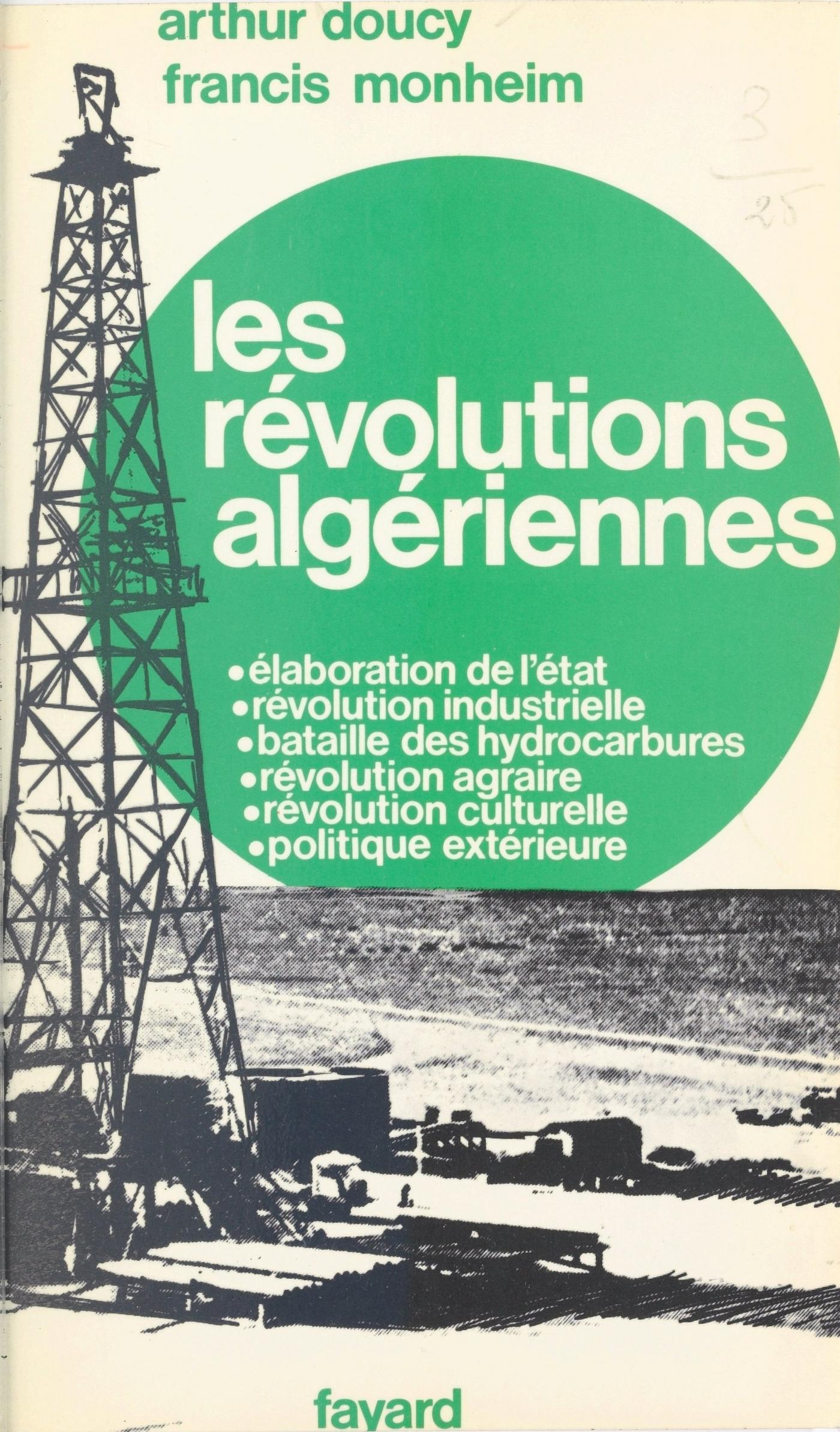 Depuis le 19 juin 1965, l’Algérie est engagée dans un certain nombre de révolutions, sur le plan institutionnel, industriel, agricole et culturel ; la révolution algérienne dans le domaine des hydrocarbures étant à la fois le symbole, le fer de lance et l’aune de cette démarche. L’ouvrage d’Arthur Doucy et Francis Monheim se propose d’analyser les révolutions algériennes sur la base des textes et des discours officiels, mais surtout à partir des faits, des réalisations concrètes et des entretiens avec le président Boumediène et plusieurs membres du gouvernement algérien. L’ouvrage présente l’élaboration de l’État algérien, examine la signification politique du redressement du 19 juin, la constitutionnalité du Conseil de la Révolution, la démocratisation progressive de toutes les institutions. Une partie est consacrée à la révolution industrielle, au Plan quadriennal qui en est l’expression concrète et à la bataille des hydrocarbures. Puis les auteurs traitent de l’autogestion en matière agricole et de la révolution agraire, esquissent les grands traits de la révolution culturelle : généralisation de l’enseignement, arabisation progressive de l’État. Ils nous donnent enfin une analyse de la politique extérieure de l’Algérie.