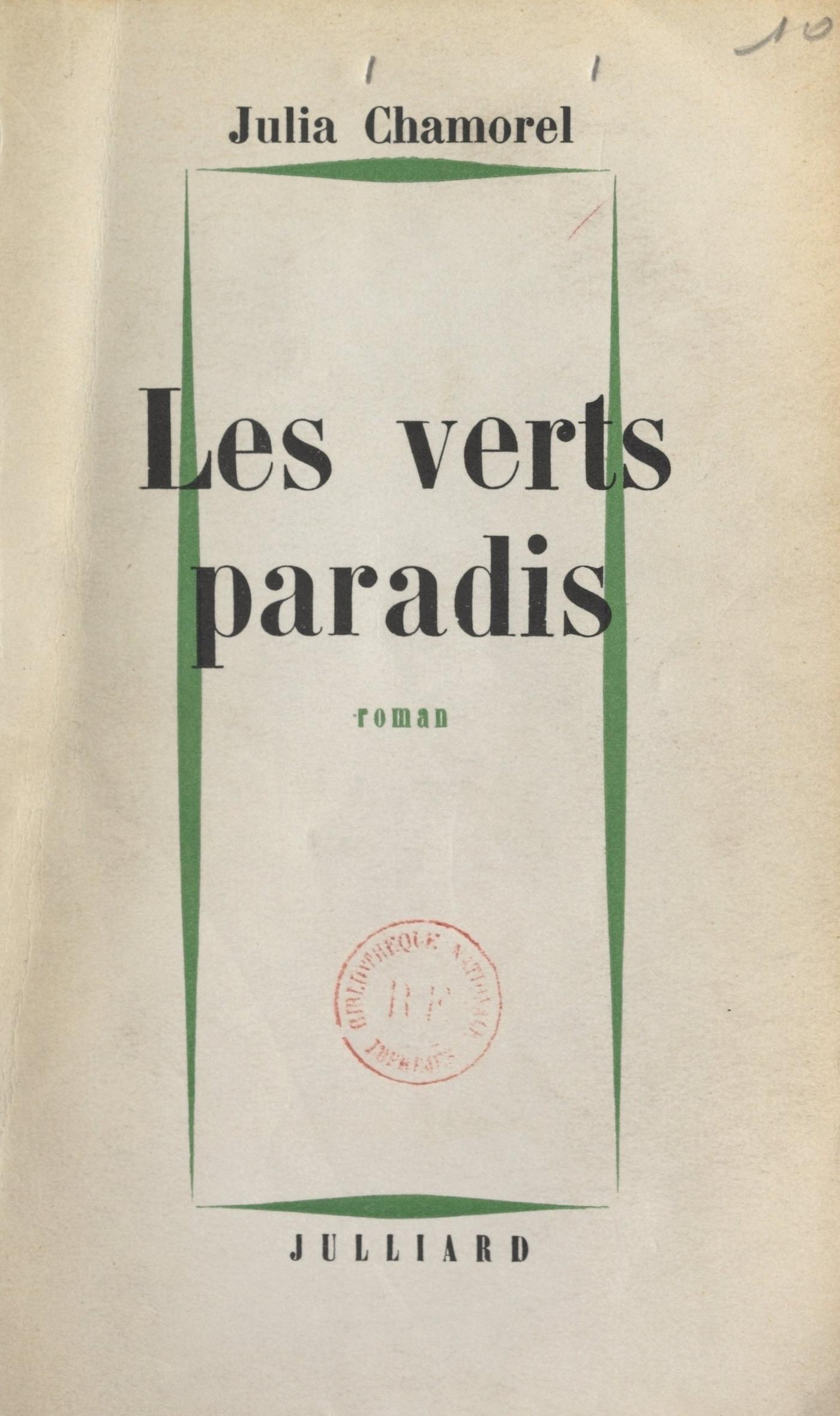 Les verts paradis, chantés par Baudelaire, ce sont ceux des amours enfantines. Mais pour une petite fille de treize ans comme Piera Innocenti, qui appartient à une misérable famille de réfugiés italiens empilés dans une pièce d’un ancien palais de la banlieue de Florence, il n’y a pas d’amours enfantines. Si elle s’échappe de son logis sordide, c’est pour tomber sur les réalités les plus crues de l’existence. Si elle cède, avec un mélange de peur et de curiosité, aux étreintes maladroites du jeune « caïd » d’une bande de garçons, c’est pour devenir mère, à quatorze ans. Et pour qui la société, prévoyante, a-t-elle fait construire les maisons de redressement, sinon pour Piera ? Julia Chamorel pénètre avec une très fine intuition romanesque dans cette jungle grouillante, cruelle et naïve. Son héroïne, Piera, encore enfant quand déjà elle devient femme, si bien que le malheur ne peut rien contre son innocence, imprimera dans le souvenir de tous les lecteurs un visage poignant et pur.