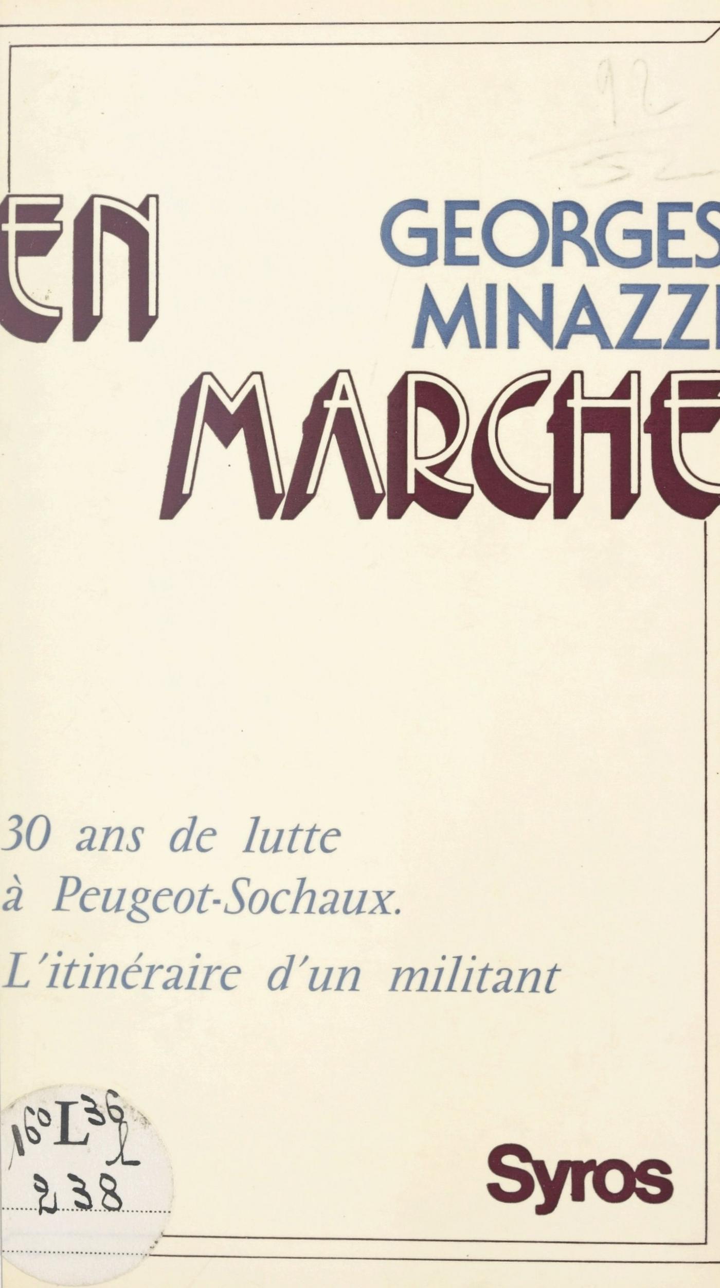 Sochaux, là où l’automobile Peugeot sort des chaînes de montage. Cette voiture, objet des rêves et des nécessités du monde moderne, représente une partie importante du travail des femmes et des hommes de cette belle région qu’est la Franche-Comté mais aussi de ceux qui viennent d’ailleurs. La voiture, symbole de communication rapide, est également, par la réalité sociale, le lieu de rencontre entre deux continents. Sur la même chaîne, on trouve Pierre, Jean, Ali, Mohamed : l’Europe et l’Afrique. En marche, c’est le livre des luttes de la classe ouvrière de Sochaux pendant un quart de siècle, mais aussi l’itinéraire d’un militant, Georges Minazzi. L’automobile part à la conquête de marchés nouveaux... La classe ouvrière doit conquérir sa vraie place...