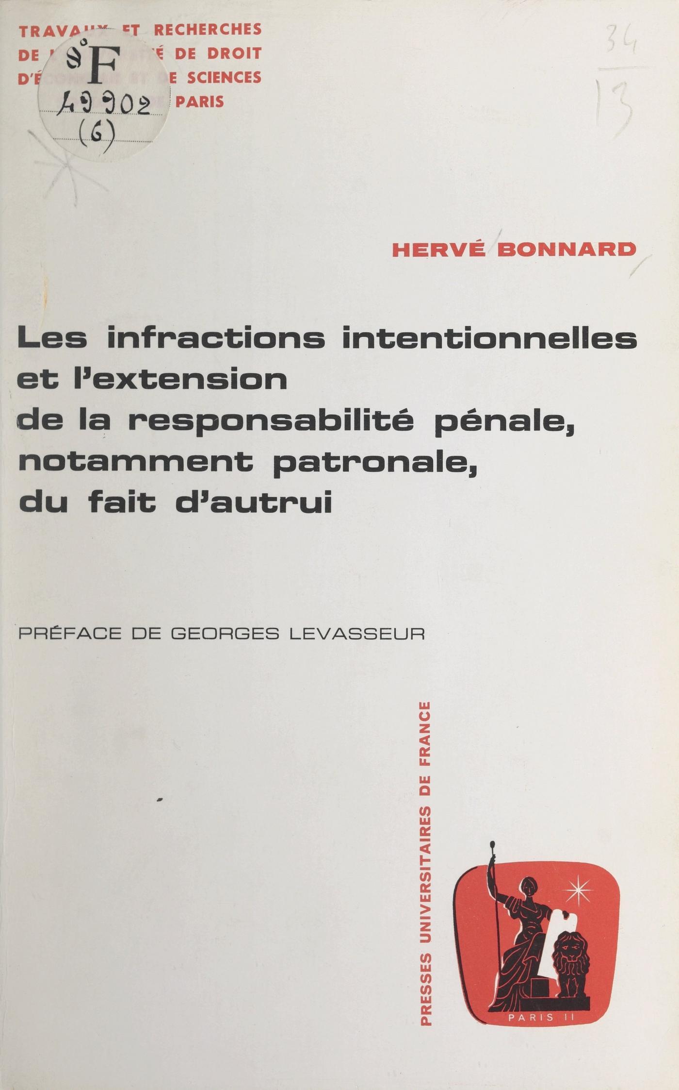 Moyen efficace de répression des infractions matérielles et des infractions d'imprudence, principalement de celles commises à l'occasion de l'activité des entreprises, la responsabilité pénale du fait d'autrui pouvait-elle être étendue à la répression des infractions intentionnelles, indépendamment de la nature de l'activité de laquelle elles résultent ?M. BONNARD critique cette extension, car non seulement rien alors ne désigne avec certitude comme auteur de l'infraction, au regard des éléments moral et matériel de celle-ci, le pénalement responsable du fait d'autrui, mais le principe de légalité est encore affecté dans la mesure où la dénaturation de l'un ou l'autre de ces éléments légaux conduit à instaurer, à côté de la complicité, un régime permettant d'en tourner les conditions.