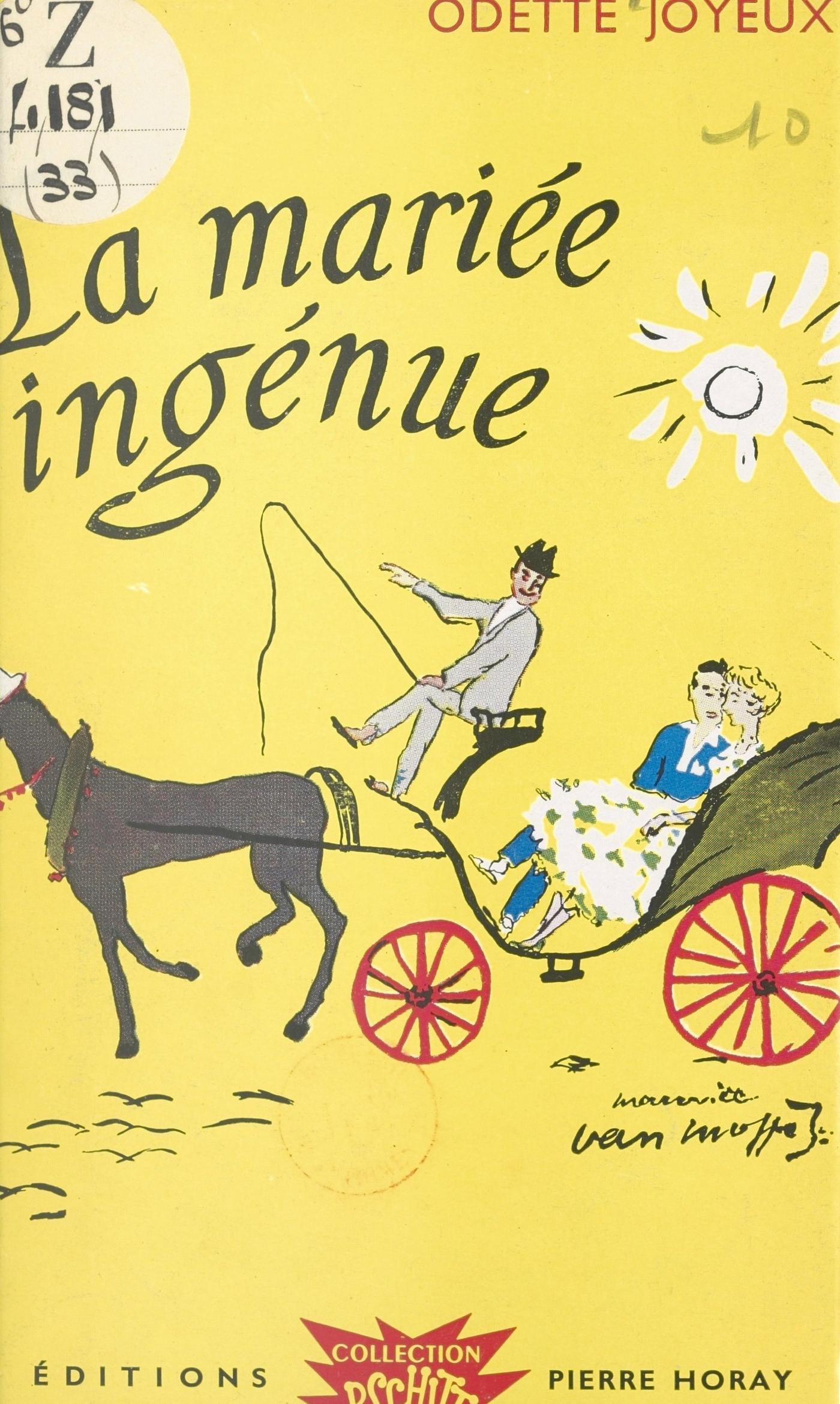 Odette Joyeux s’est mariée, il y a deux ans, à la Collection PSCHITT. Le fruit de cette union a été LA MARIÉE EST TROP BELLE : enfant joyeux (naturellement), baptisé sur-le-champ au champagne du Prix Courteline. L’on se souvient des aventures de « Chouchou », petite fille toute simple et toute fraîche, encore étudiante, et qui fait le mannequin pour le grand journal féminin L’AMOUR DE VIVRE. Comment, lancée dans un reportage ayant pour thème « un mariage à la campagne » et devant figurer elle-même la mariée elle prend subitement feu pour Michel, son partenaire improvisé, lequel le lui rend bien, à la fureur de Judith, sa maîtresse, qui a organisé, la pauvre, ce redoutable incendie... Odette Joyeux nous donne aujourd’hui, avec La MARIÉE INGÉNUE, la suite de cette piquante histoire. Chouchou est devenue célèbre grâce à son reportage. De gros producteurs s’intéressent à sa petite personne. Elle se marie réellement cette fois avec Michel, délivré de Judith... Elle va tourner un film. Ce film... mais, psschut ! ne dévoilons pas — c’est le cas de le dire — notre ingénue. Plus encore peut-être que dans son livre précédent, les qualités de l’auteur sont manifestes : duel mené tambour battant entre la drôlerie et l’émotion. On pourrait avancer d’Odette Joyeux qu’elle est le Pirandello du PSCHITT, tant elle mêle avec bonheur, fiction et réalité, tant cette réalité devient plus inimaginable que la fiction !