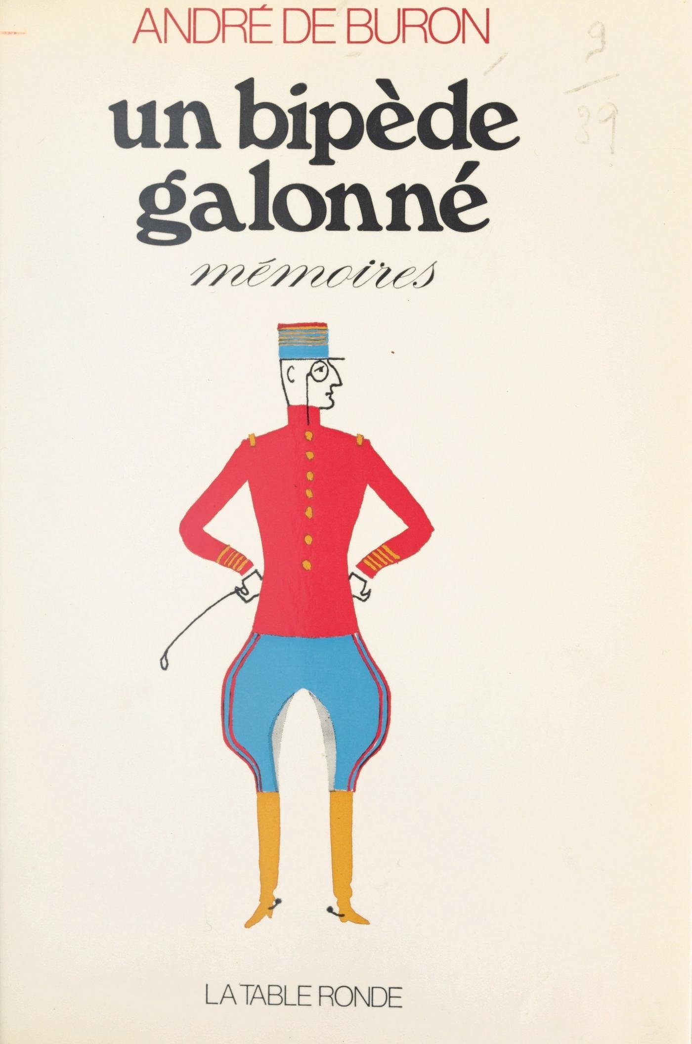 « Un bipède galonné » ce sont les souvenirs d'un cavalier qui, pendant quarante ans, fut de toutes les campagnes et sut garder l'œil ouvert pour se moquer de tout.André de Buron fait ses premières armes en 1919, en Turquie, guerre complètement oubliée d'une France qui jouit de la paix — une paix bien gagnée, il est vrai. Quand il terminera sa carrière, en Algérie, ce sera encore la guerre, une triste guerre.Entre-temps, la Tunisie (Biribi), le Maroc, le front des Ardennes, et l'Afrique noire, l'Indochine : un parcours complet d'équitation.Dans ces décors divers, ce diable d'homme promène, au milieu des dangers et des accidents les plus fous, une malice inépuisable. Ce livre si vif, plein de courage, d'éclats et de moquerie semble fait pour prouver que les Français sont encore une insolente nation.Pourquoi André de Buron a-t-il découvert si tard le plaisir de raconter, plaisir qu'il fait partager comme personne ? Pourquoi Nicole de Buron a-t-elle donné une préface à ce livre ? C'est ce que vous saurez précisément en lisant la préface.