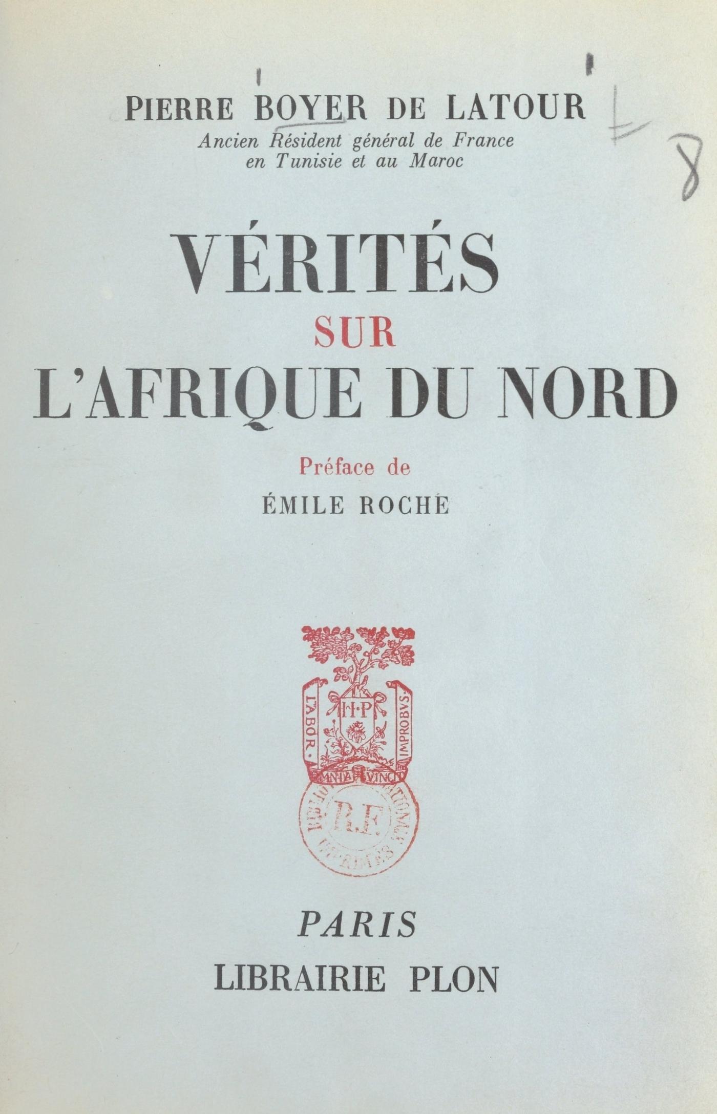 Sur quarante-deux années de service, le général Pierre Boyer de Latour en a passé vingt-quatre dans le Maghreb. Depuis 1916, à part deux ans d’école et trois ans de commandement de troupes métropolitaines, il a toujours eu sous ses ordres des troupes nord-africaines. Il s’est acquis leur confiance et c’est avec leur concours qu’après l’armistice de 1940 il reconstitua un régiment de Tabors. Médaillé militaire, Grand Croix de la Légion d’Honneur, le général Boyer de Latour est titulaire de 24 citations dont 18 à l’ordre de l’armée et a reçu la D.S.O. (Distinguished Service Order) britannique et la D.S.C. (Distinguished Service Cross) américaine. A ses fonctions militaires sont presque toujours venues s’ajouter des fonctions administratives et politiques. Appelé en février 1951 à Rabat pour exercer auprès du Maréchal Juin les fonctions de secrétaire général des Affaires politiques et militaires, désigné ensuite, en mars 1954, comme Commandant des Troupes de Tunisie, puis comme successeur de M. Voizard à la Résidence, à Tunis, le général Boyer de Latour fut appelé de nouveau à Rabat, en août 1955, comme Résident général en remplacement de M. Grandval, démissionnaire. Deux mois plus tard, le général démissionnait lui aussi, à la suite de l’affaire du Conseil du Trône et du revirement du Glaoui. Ces trois missions correspondent à trois moments cruciaux de notre politique en Afrique du Nord. Partisan depuis longtemps d’une évolution hardie mais progressive, qui aurait dû comporter d’abord des réformes économiques et sociales, le général Boyer de Latour raconte ici comment cette évolution fut compromise et perdue par les indécisions et les inconséquences d’un irréalisme politique qui a conduit la France et l’Afrique du Nord à la tragique situation d’aujourd’hui.