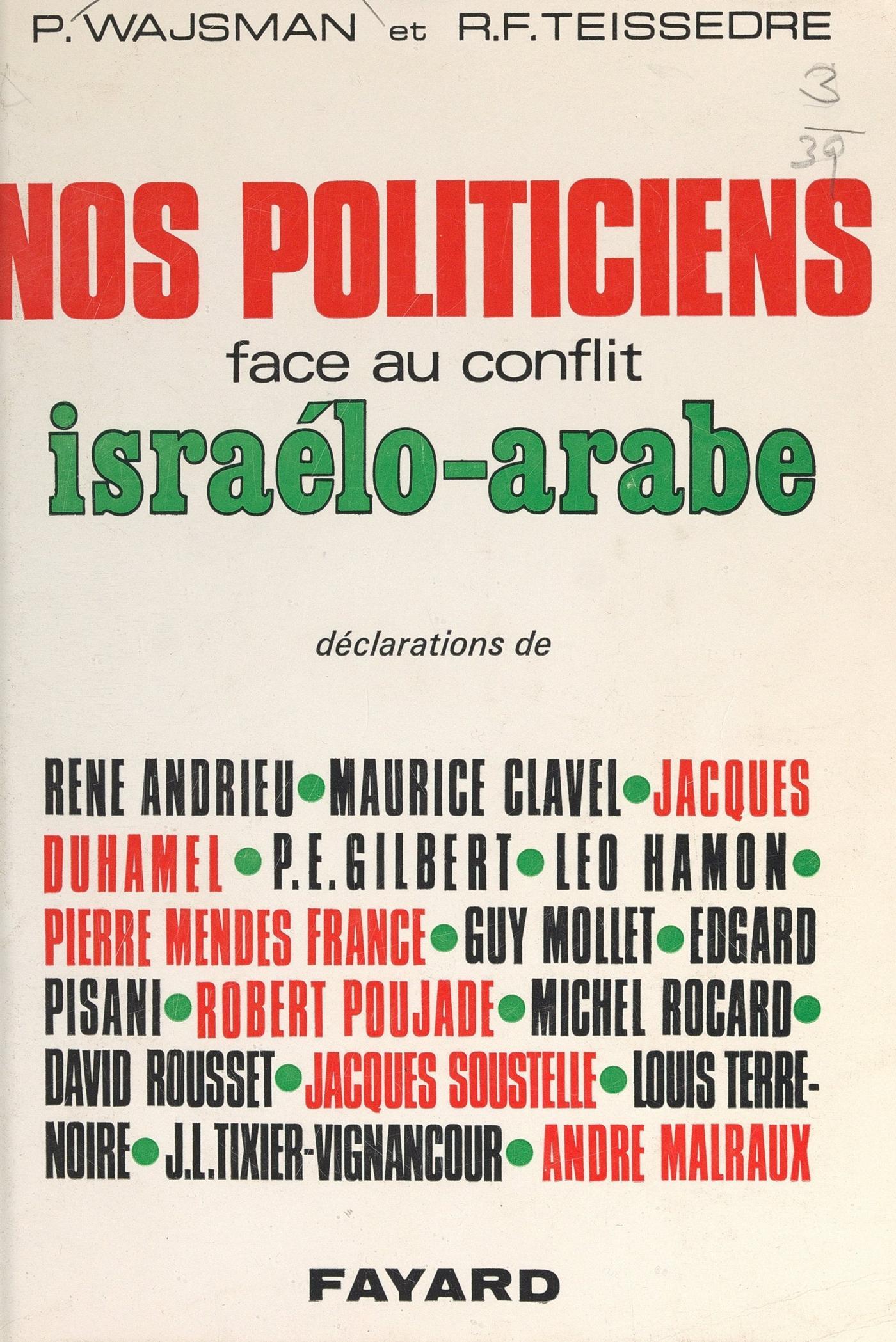 Pour une fois, on ne "raconte" pas le conflit israélo-arabe. On l’explique. Les auteurs rompent avec cette tradition qui veut que l’on découpe arbitrairement l’Histoire en tranches pour s’attacher, au contraire, aux thèmes actuels du conflit et les replacer dans leur contexte naturel : Y a-t-il un impérialisme israélien ? Est-il exact de parler de socialisme arabe ? Les opérations d’El Fath relèvent-elles du terrorisme ou de la résistance ? Pourquoi l’U.R.S.S. se retrouve-t-elle du côté des arabes ? Quelles sont les causes secrètes de l’embargo français ? Pourquoi et comment U. Thant fut-il l’unique responsable de la guerre de juin 1967 ? Sur ce point comme sur d’autres, les auteurs, qui ont eu accès à des sources inédites, font de véritables révélations... Mais surtout P. Wajsman et R.-F. Teissedre ont pu rencontrer et s’entretenir avec les plus représentatifs de nos hommes politiques, sans considération de tendances (Malraux, Mendès-France, Rocard, Mollet, Tixier-Vignancour, Andrieu, Duhamel, etc...), et recueillir leurs opinions et leurs confidences exclusives sur les divers problèmes que pose le conflit entre Israël et le monde arabe. Ainsi pourra-t-on découvrir dans cet ouvrage la surprenante opposition de ministres gaullistes à la politique moyen-orientale du Général et l’explication de leur silence... Ainsi manifestera-t-on de la surprise en apprenant, de leur propre bouche, que des hommes qui combattent farouchement le gaullisme eussent mené ou mèneront la même politique que lui, tandis que ses plus fidèles partisans appellent de leurs vœux un revirement total... En un mot, ce livre donne, sur un des thèmes-clés de notre politique extérieure, la parole à ceux qui vont, dans les prochains mois, la prendre en charge.