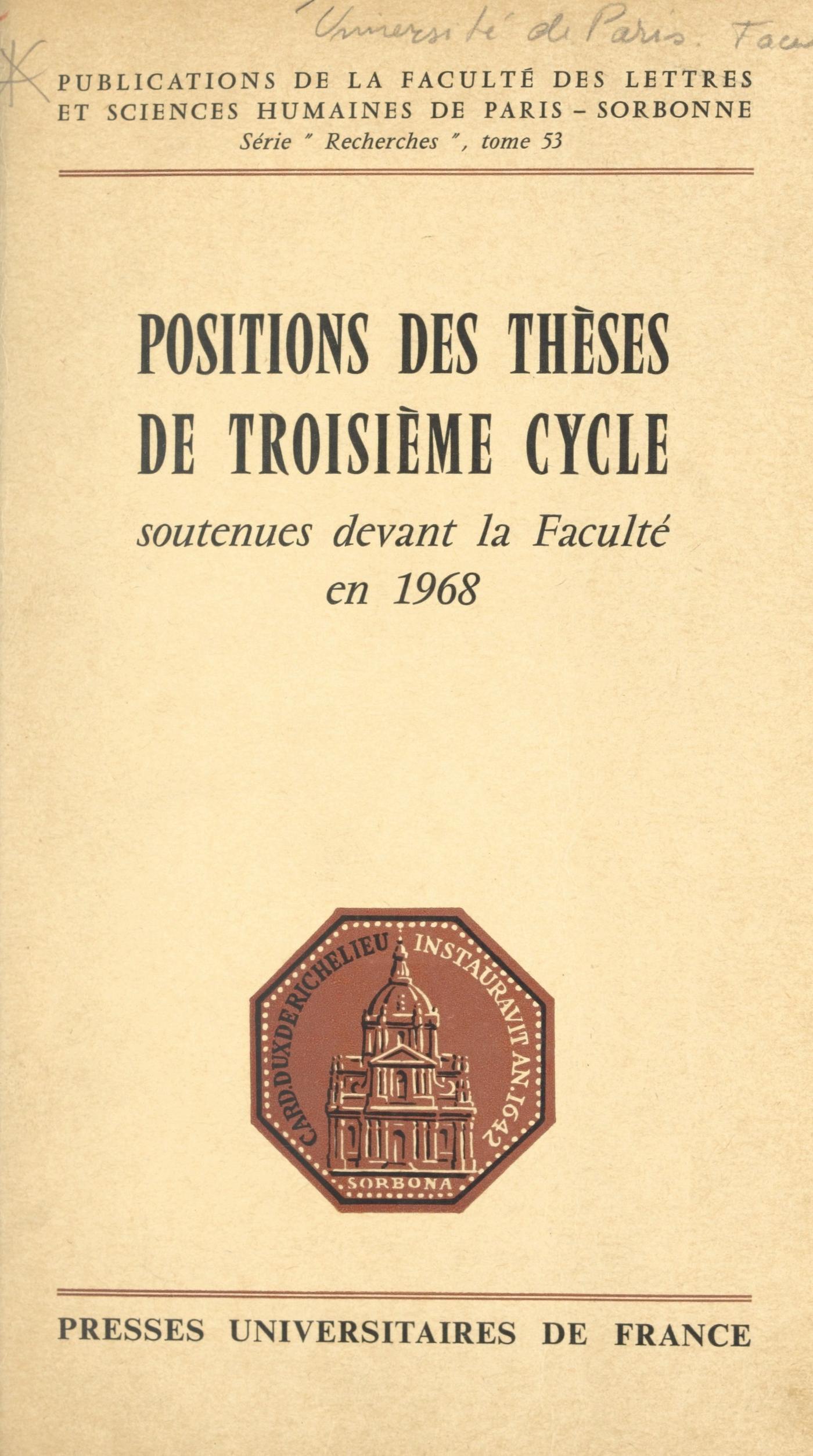 Collection : Publications de la Faculté des lettres et sciences humaines de Paris-Sorbonne - Série Recherches