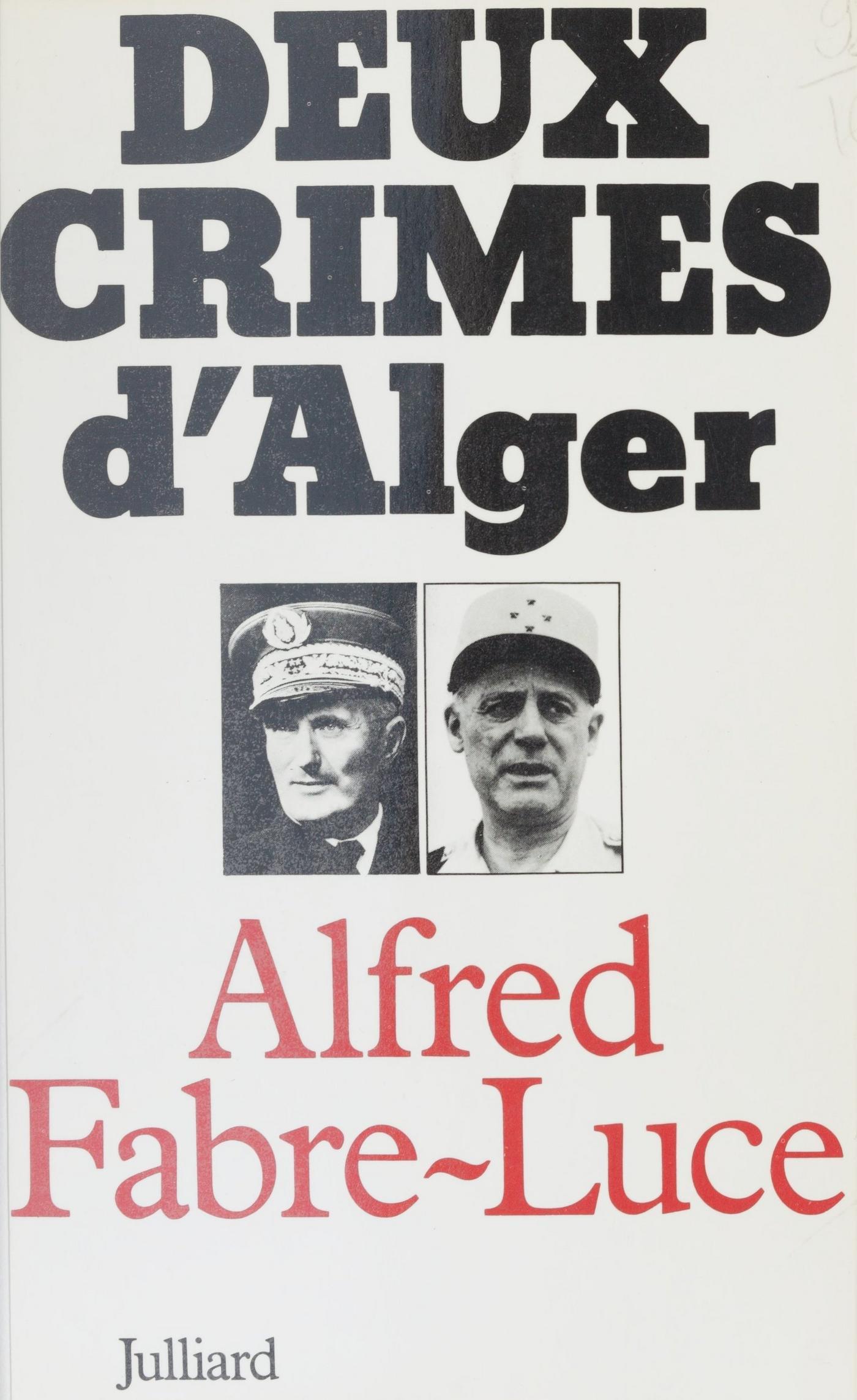 Deux crimes d’Alger : l’assassinat de l’amiral Darlan le 24 décembre 1942 et celui du commandant Rodier le 16 janvier 1957. Ces deux affaires n’ont, jusqu’ici, jamais été examinées ensemble. Il y a pourtant entre elles une certaine parenté politique, et, dans les deux cas, le processus d’élucidation a été le même : les inspirateurs se sont révélés à travers leurs efforts pour empêcher la découverte de la vérité. L’auteur éclaire ces zones obscures en approfondissant l’examen des dossiers et des procédures. Son livre, passionnant comme un roman policier, nous aide à pénétrer la psychologie de quelques grands acteurs de l’histoire contemporaine, et nous permet ainsi de mieux comprendre certains grands clivages politiques de notre temps.