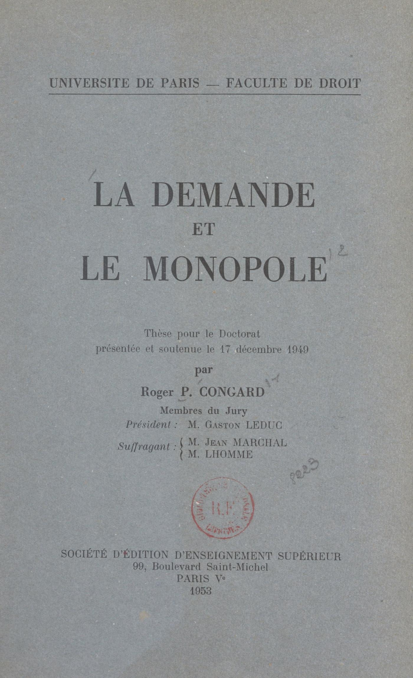Thèse pour le Doctorat présentée et soutenue le 17 décembre 1949