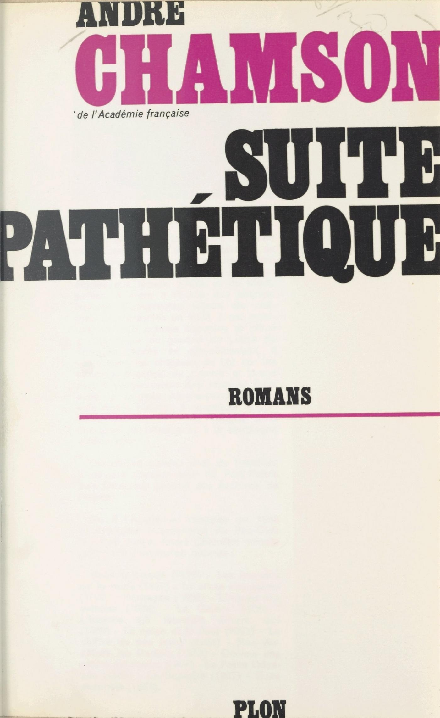 Ces trois récits sont trois pierres noires au bord de la route que j’ai suivie. Composés à quelques années d’intervalle, ils peuvent apparaître aussi, au milieu des autres livres que j’ai écrits, comme la triple émergence d’un même courant souterrain. C’est pour cela que j’ai cru pouvoir les grouper, en forme de « suite », de la même façon que je l’avais déjà fait, dans la Suite cévenole, avec les romans consacrés au pays de mon enfance. C’est ce que je pourrais faire aussi légitimement en composant, avec d’autres de mes livres, une Suite guerrière, une Suite voyageuse, comme je propose aujourd’hui cette Suite pathétique. Pathétique ? C’est bien le mot qui m’a semblé définir le mieux la tonalité de cet ouvrage. Est pathétique « ce qui est relatif à la passion, ce qui émeut vivement, excite une émotion intense, souvent pénible (douleur, pitié, horreur, terreur, tristesse), ce qui est émouvant et touchant ». C’est cette tonalité qui unit entre eux les trois romans que l’on trouvera dans ce volume. Chaque fois, sans le vouloir, sans même m’en rendre compte sur le moment, j’ai retrouvé le même thème fondamental, le même pathétique du pathétique, celui d’une vie qui se désagrège, prise aux pièges de ses fatalités intérieures, livrée sans recours aux démons de sa propre nuit.