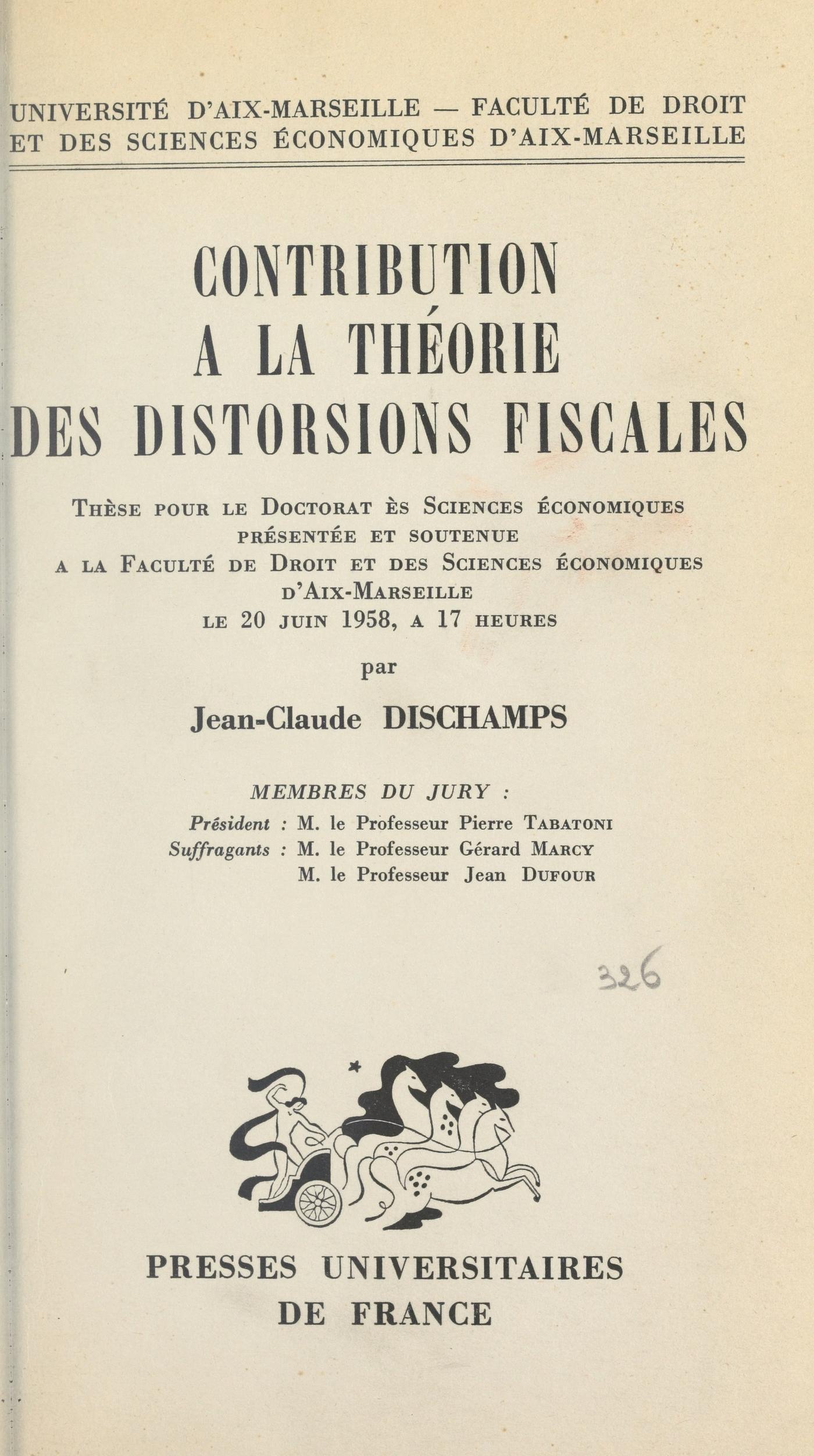 Thèse pour le Doctorat ès sciences économiques présentée et soutenue à la Faculté de droit et des sciences économiques d'Aix-Marseille le 20 juin 1958, à 17 heures
