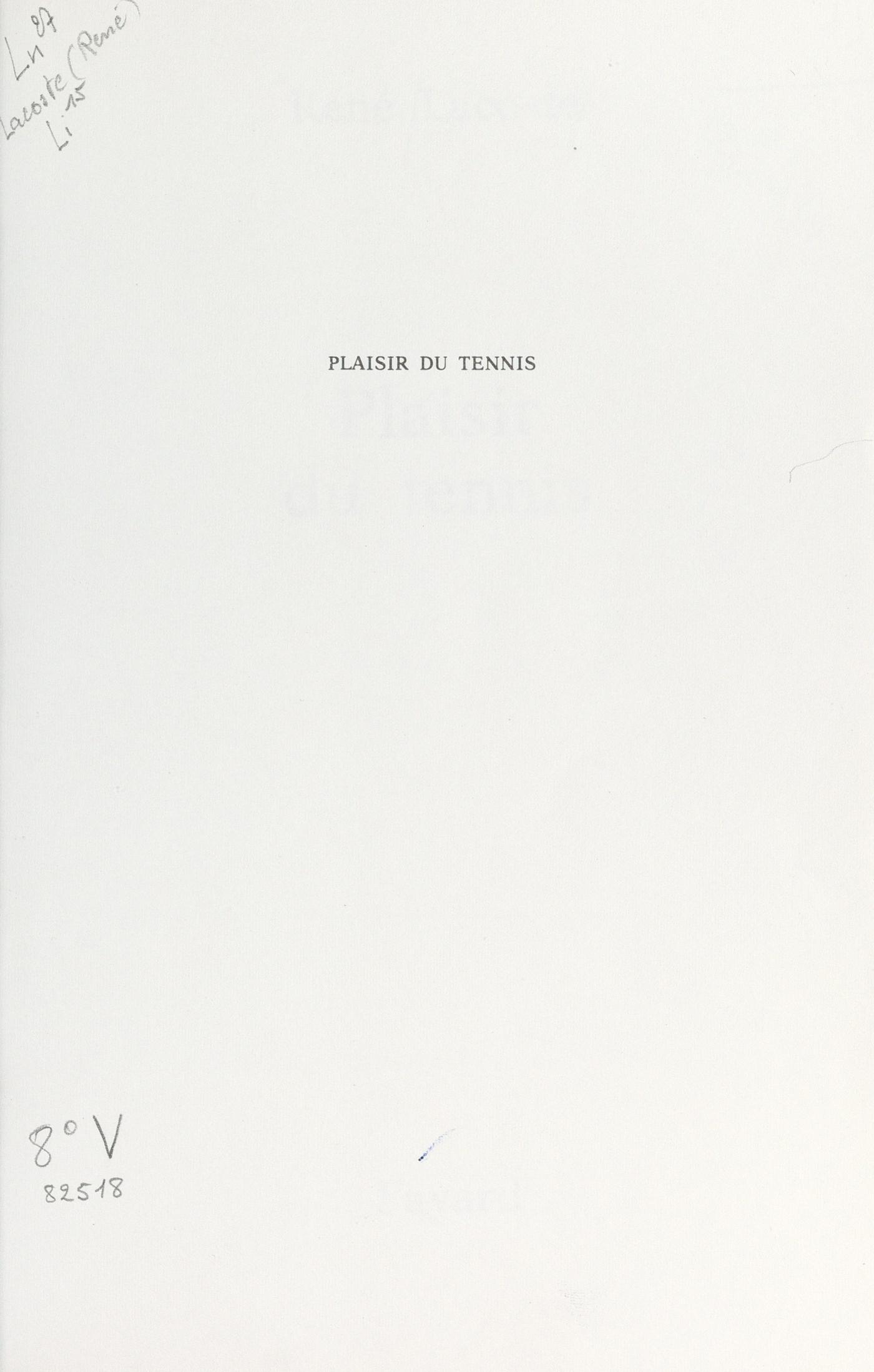 Dans mon enfance scolaire et dans mon lit, les héros de l'Antiquité habitaient mes songes avec les champions : j'étais Hannibal traversant les Alpes avec ses éléphants ; je prévenais Cléopâtre de la présence d'un aspic ; et, la minute d'après, je devenais Lacoste terrassant Tilden dans la Coupe Davis.Une nuit, mes rêves — plutôt les siens — se réalisèrent : cette nuit de l'été 1927, à La Baule, où mon oncle me réveilla à une heure du matin, en s'écriant, à la première personne du pluriel : « Pierre ! Nous avons gagné la Coupe Davis ! » L'oncle dirigeait la revue Tennis et Golf : pour lui, c'était la gloire… Trois mois avant, déjà, à La Faisanderie, Lacoste, grâce à une régularité de métronome et à un passing-shot de revers, ajusté le long des lignes avec une précision de géomètre, avait vaincu le magicien Tilden, aux sortilèges — et au service-canon — duquel personne n'avait résisté depuis sept ans : 11/9 au cinquième set, avec deux balles de match contre le « crocodile ».Il m'aura fallu attendre plus d'un demi-siècle, pour qu'une finale (Borg-McEnroe) me donne des palpitations comparables (un peu moins fortes car il n'y avait pas de Français dans le coup).Aujourd'hui, « Plaisir du Tennis » a pour moi une double saveur : si le tennis m'a appris que l'on pouvait avoir du génie sur le court, et être complètement idiot en dehors des heures de service (cela peut être vrai d'un industriel ou d'un pianiste) — ce n'est pas le cas de Lacoste : tacticien hors pair, il est excellent analyste. Et s'il insiste sur le plaisir du jeu, c'est qu'il a connu une époque où il y avait encore un parfum de dilettantisme — sinon de véritable amateurisme… Aujourd'hui, le tennis est devenu une affaire sérieuse. Si sérieuse, qu'on croit rêver en pensant que Borotra, ayant gagné Wimbledon, allait le lendemain à son bureau. On n'entend même plus les « good shot ! » ou « magnifique ! » qui saluaient la réussite de l'adversaire. Économie d'énergie verbale. Et il ne viendrait à l'idée — ou à l'esprit — de personne de crier comme Mme Fenwick, parce que le soutien-gorge d'une joueuse a craqué alors que le score est de 40 partout : « avantage dehors ! ».Pierre Daninos