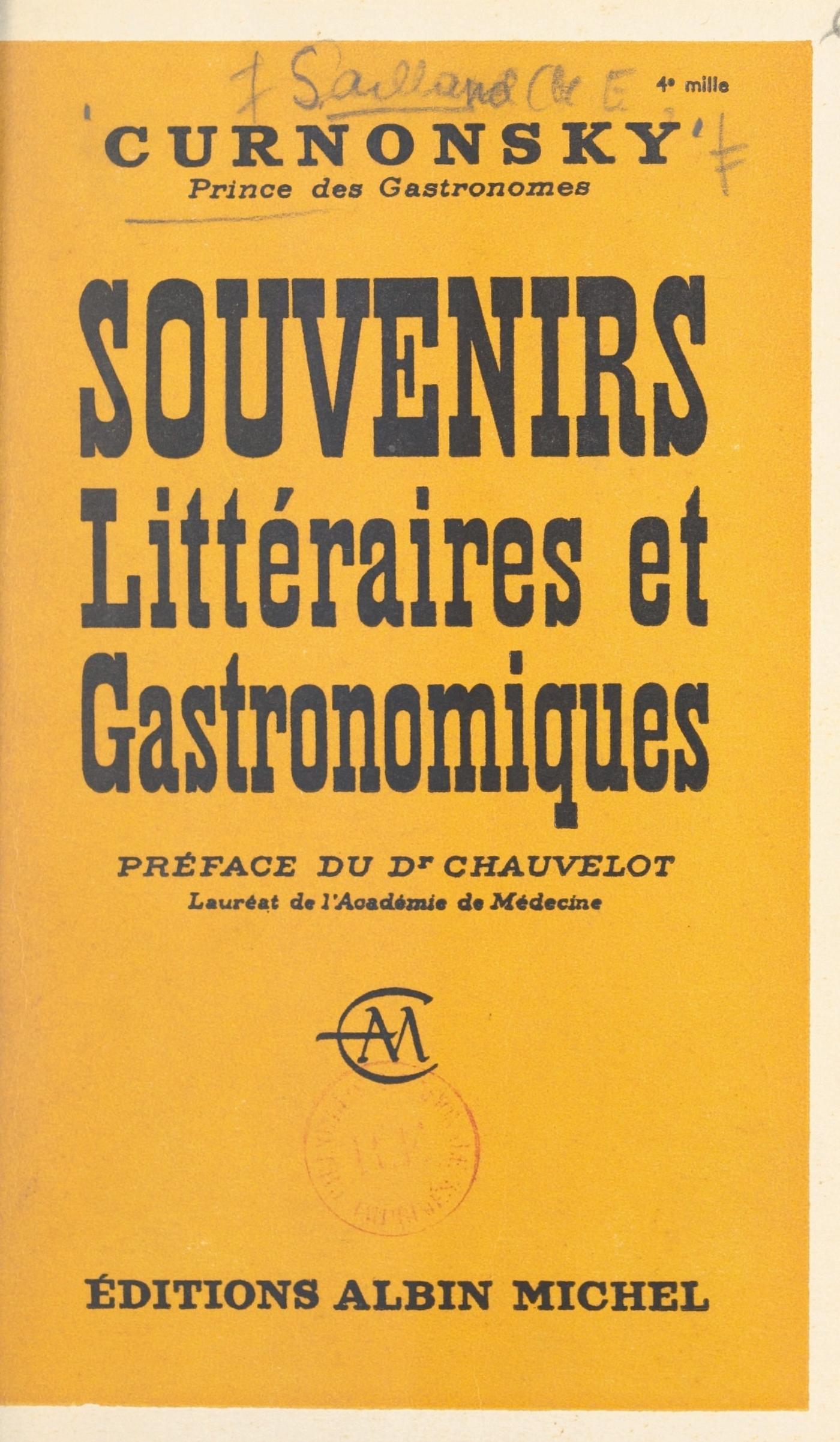 Souvenirs brillant d'esprit et, à tous points de vue, de vérité sur Alphonse Allais, Pierre Louÿs, Colette, Courteline, Toulet, Raoul Ponchon, Tristan Bernard, Moréas, etc ; lettres ou poésies inédites de Louÿs, Toulet, Ponchon, Debussy, Maurras, etc,... cet ensemble de médaillons et de portraits, de textes frais de romanciers, poètes, humoristes, musiciens, politiciens célèbres retiendra l'attention des milieux les plus divers et son intérêt multiple semble promis au plus large des succès.Les pages inédites de Curnonsky et de ses illustres amis constituent la première moitié de l'ouvrage. Mais la seconde partie n'est pas moins captivante, non seulement par les confidences de l'auteur sur son Anjou natal, mais parce qu'elle permettra aux amateurs de bonne chère de faire, et avec quel guide ! le plus savoureux des Tours de France.Bien que posthumes ces souvenirs constituent une des œuvres les plus réussies, les plus finies du regretté prince des gastronomes. Dans une époque de "snack-bars", de bougeotte, de jus de fruits et de frugalités, la France - grâce en partie à Maurice Sailland (Curnonsky) - reste le pays du neuvième Art.