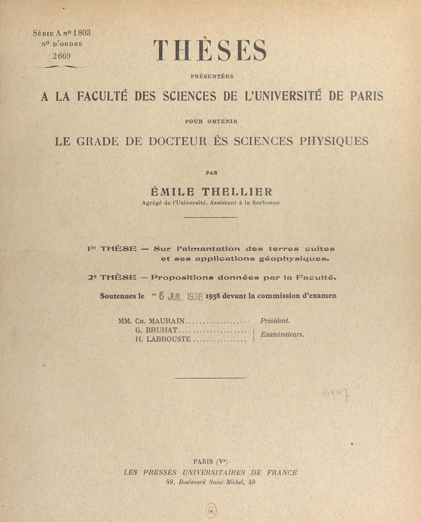 Thèses présentées à la Faculté des sciences de l'Université de Paris pour obtenir le grade de Docteur ès sciences physiques