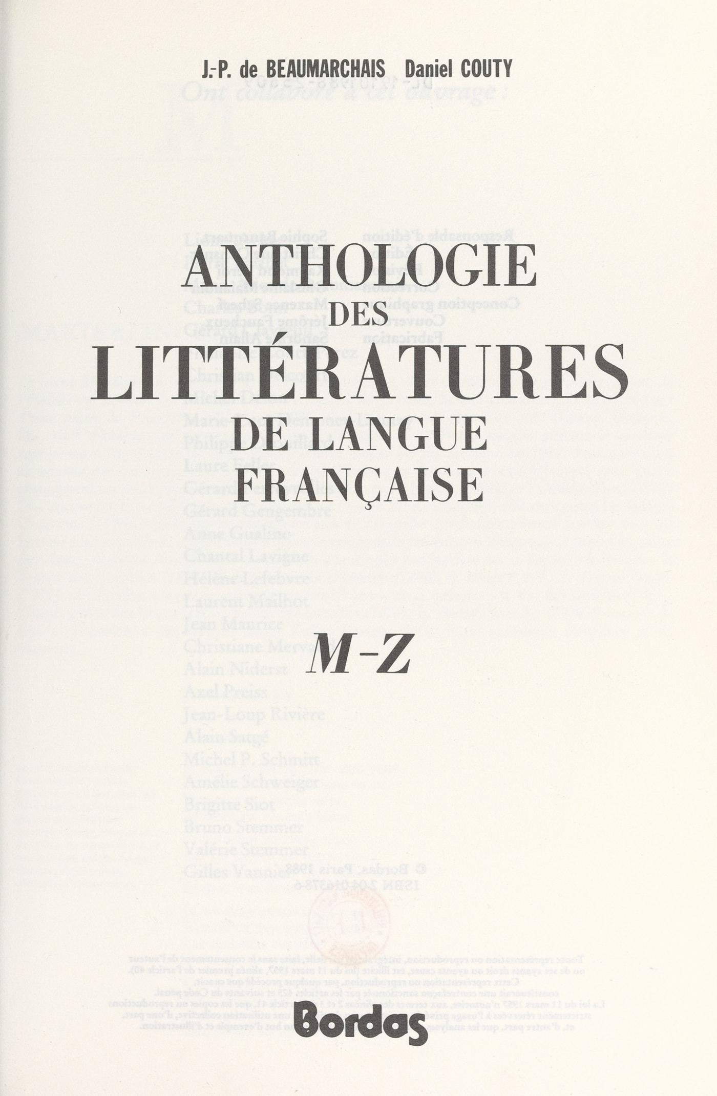 Auteur(s) : Daniel Couty, Jean-Pierre de Beaumarchais