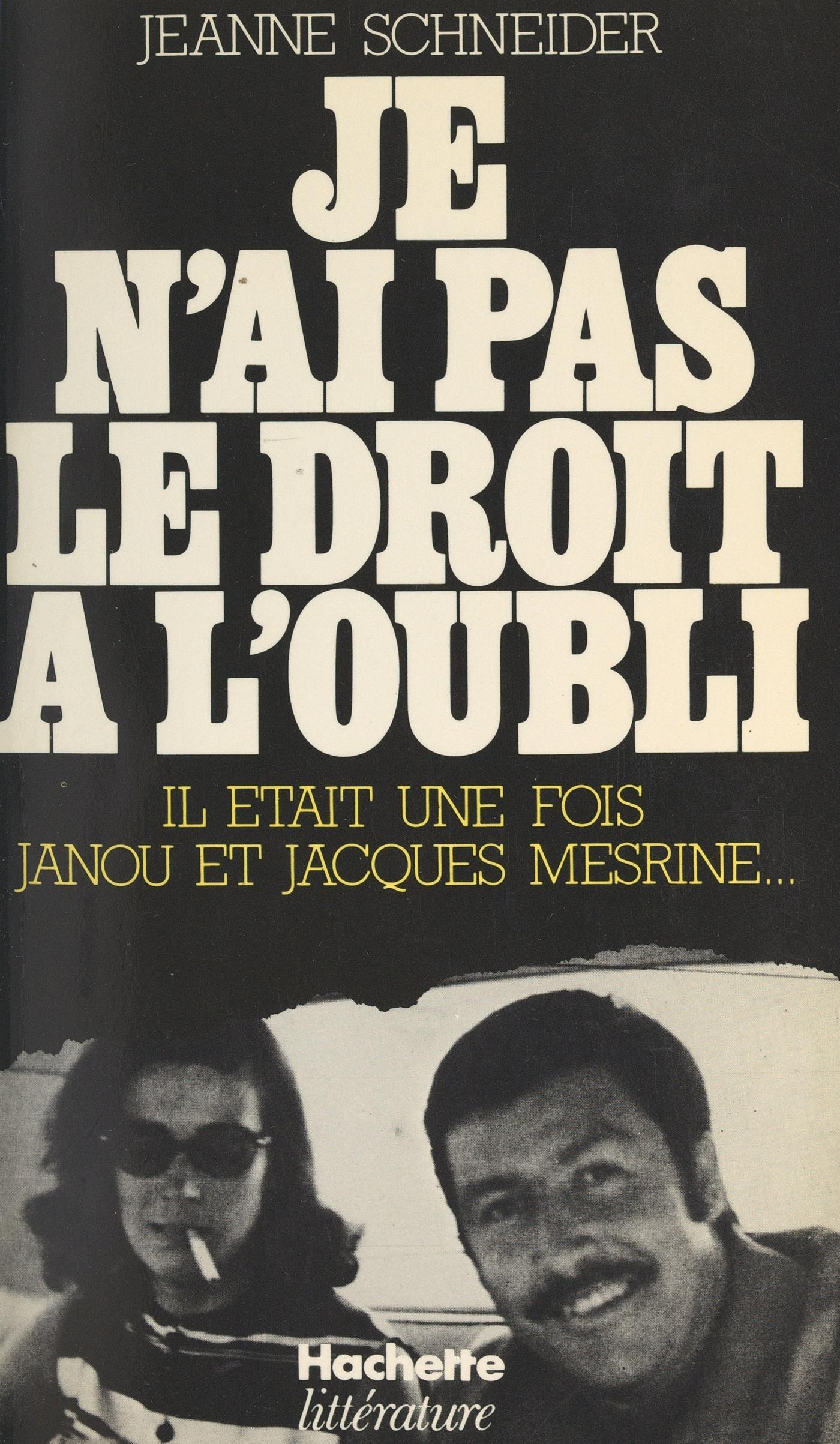 Ce livre n'est pas seulement l'histoire d'un couple, Jeanne Schneider et Jacques Mesrine qui, tels Bonnie and Clyde, défient la société, sa morale et ses institutions dans une série d'affaires à sensation. C'est la vie d'une femme qui se dévoile ici : son enfance, les premiers larcins, la difficulté à vivre, la connaissance du milieu, la prostitution, la prison à la Roquette et enfin, en 1966, la rencontre de Jacques Mesrine. Dès lors, la rupture avec la société est totale : c'est le rapt d'un milliardaire au Canada, la fuite aux États-Unis, les Assises, la cavale, l'extradition, l'internement à Fleury-Mérogis et à nouveau les Assises. Nulle complaisance ici, nulle tentative de justification d'un passé tumultueux.Jeanne Schneider explique comment le « trajet social » d'un homme, d'une femme peut être bouleversé par le hasard, démonte le fonctionnement de la justice en France et au Canada, raconte la vie quotidienne en prison, son isolement, son désespoir, son suicide, la séparation avec sa fille qui grandit loin d'elle, puis les difficultés qu'elle rencontre - depuis 3 ans - pour se réinsérer dans la vie habituelle, « normale ». Après avoir totalement épousé la cause de l'homme qu'elle aimait, elle lance un nouveau défi, mais à la vie cette fois : il s'agit de se prouver que le passé ne définit pas une fois pour toutes son avenir, qu'elle peut se retrouver femme et mère. Et le livre s'achève sur ce cri d'orgueil et d'espoir : « Je suis comme le printemps, je refleuris. »