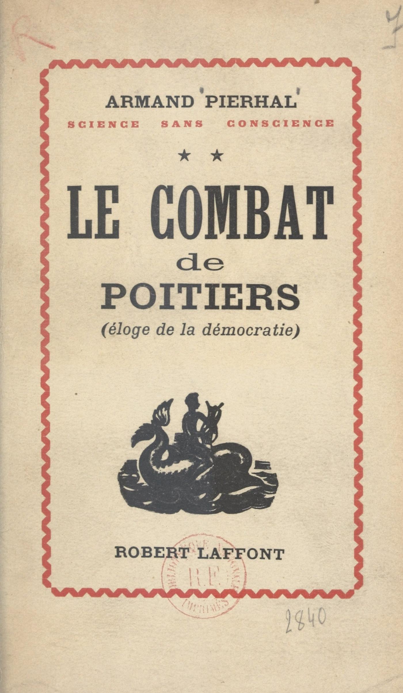 « Père, gardez-vous à droite ! Père, gardez-vous à gauche ! » Ainsi, le jeune Philippe prévenait-il le roi Jean le Bon, en combattant à ses côtés à Poitiers. C'est un combat de ce genre, que l'auteur mène dans ce livre, conscient que la démocratie se trouve menacée aujourd'hui,, au moins autant sur son extrême-gauche que sur son extrême-droite. Et, depuis la défaite des régimes totalitaires allemand et italien, la menace à l'extrême-gauche est devenue même la plus redoutable. C'est pourquoi, si l'auteur consacre les deux premiers chapitres à défendre la démocratie et la liberté, face à un contradicteur de droite, il emploie les autres chapitres de son livre à la réfutation du totalitarisme communiste. On a souvent dit que le communisme était devenu une religion. L'auteur n'est pas loin de le penser. Mais il croit que c'est une religion fausse, et il s'applique à le montrer. Cent ans après le « Manifeste communiste », on trouvera ici une tentative, la première peut-être aussi complète, pour réfuter le marxisme, du point de vue des droits et des libertés imprescriptibles de la personne humaine. Or, c'est là le point de vue même des grands révolutionnaires de 1789. Ce sont les Droits de l'Homme que le totalitarisme communiste remet en question. C'est pour les défendre que l'auteur mène son combat : « Il faut refaire la Révolution française ! » déclare-t-il. Aujourd'hui, où tout le monde se jette le mot de démocratie à la tête, chacun y mettant autre chose, il est indispensable de commencer par définir ce que l'on entend soi-même par ce terme. L'auteur n'y manque pas. Un citoyen libre s'adresse ici à d'autres citoyens libres. Comme il le spécifie encore, il n'écrit pas pour les gouvernants, mais pour les gouvernés, pour éclairer cette opinion de l'homme de la rue, qui est déterminante en démocratie, puisque c'est elle qui oriente la politique générale de la nation. Si bien que l'on a, dans « Le combat de Poitiers » un ouvrage qui prend, en quelque sorte, le contre-pied même du fameux traité de Machiavel : « Le Prince ». Enfin, nous ne saurions trop recommander au lecteur de ne pas feuilleter ce livre, mais de le lire d'un bout à l'autre. Telle objection qu'il pourra faire à tel argument de l'auteur, il y aura souvent des chances qu'il en trouve la réponse en quelque autre endroit de l'ouvrage.