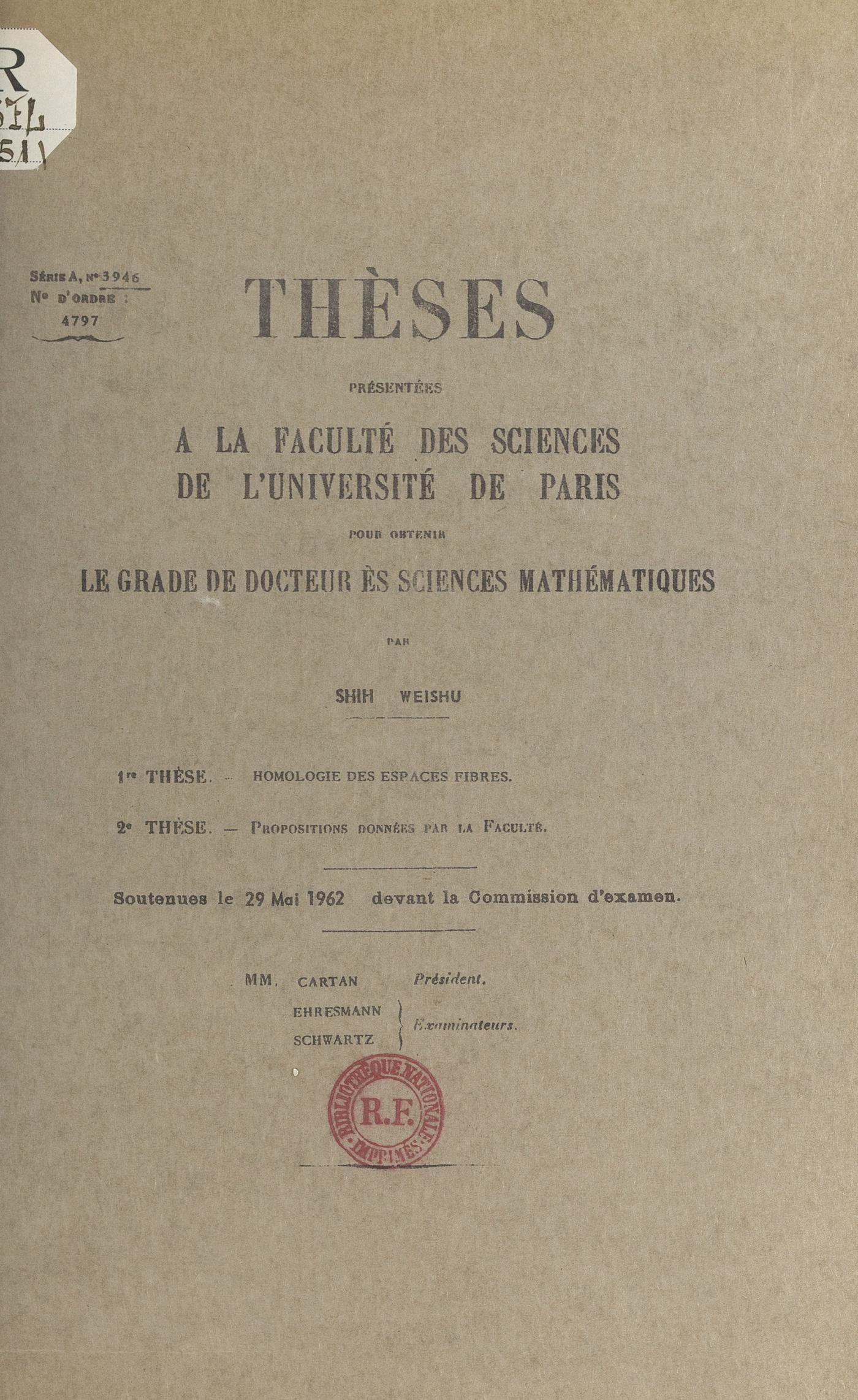 Thèses présentées à la Faculté des sciences de l'Université de Paris pour obtenir le grade de Docteur ès sciences mathématiques