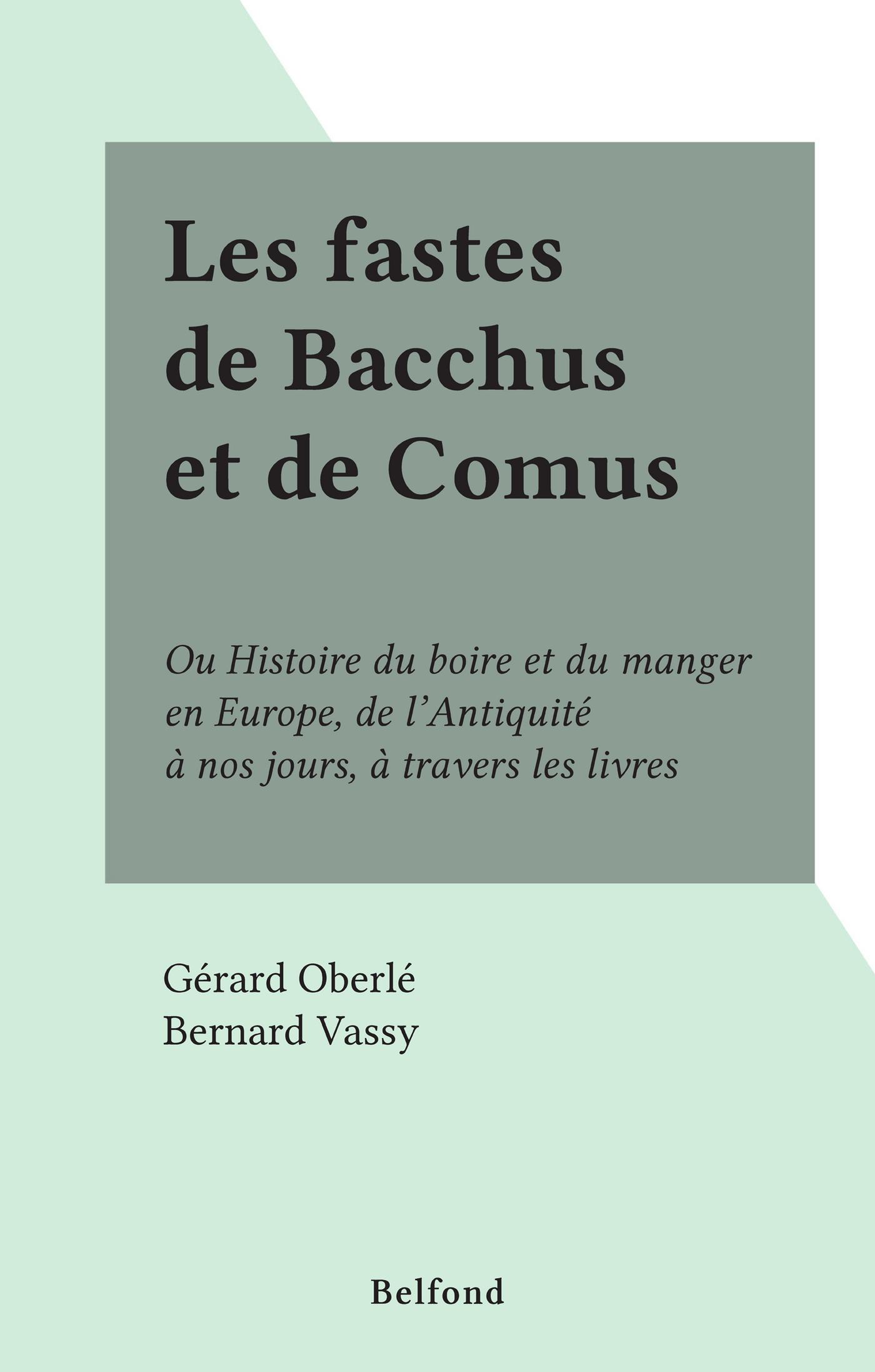 Ou Histoire du boire et du manger en Europe, de l'Antiquité à nos jours, à travers les livres