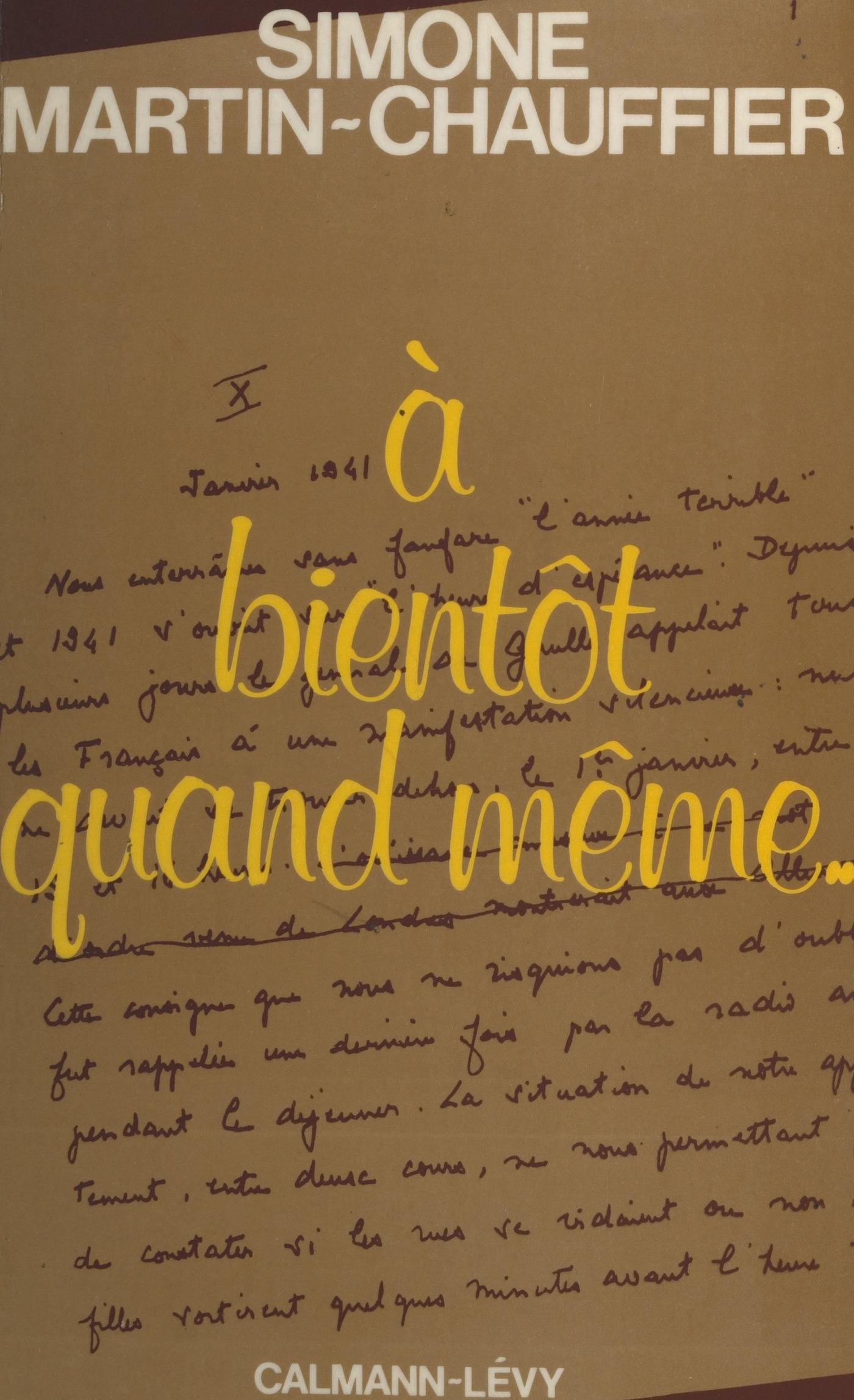 On a beaucoup écrit sur la vie en France pendant l’Occupation. Pourtant le livre de Simone Martin-Chauffier se détache d’un ensemble riche en précieux témoignages. La sensibilité de la narratrice, son courage font vivre ou revivre le lecteur à l’époque des tickets, de la déportation, de la détresse mais aussi de l’espoir. La vie de la famille Martin-Chauffier se déroulait sous le signe de l’inquiétude journalière doublée de l’angoisse due au développement de la guerre. Il fallait subir le froid, la faim, les deuils causés par la perte des copains disparus, la menace de l’arrestation. Louis et Jean Martin-Chauffier devaient être déportés. Il fallait aussi dépendre du monde : oui, l’Angleterre tient – écrit Simone – mais les Allemands avancent en Russie. Dans la famille, établie à Collonges, ou autour d’elle, les camarades, les amis qui participent au « grand jeu » : André Malraux, Emmanuel d’Astier, Jean Moulin, Claude Aveline, Georges Friedmann, Louis Joxe, Georges Maranne ; ceux de Libération, de Combat, de Franc-tireur et du Front national... Un grand livre bouleversant, chaleureux, avec, en plus, des clins d’œil du destin quand les choses ne vont pas trop mal.