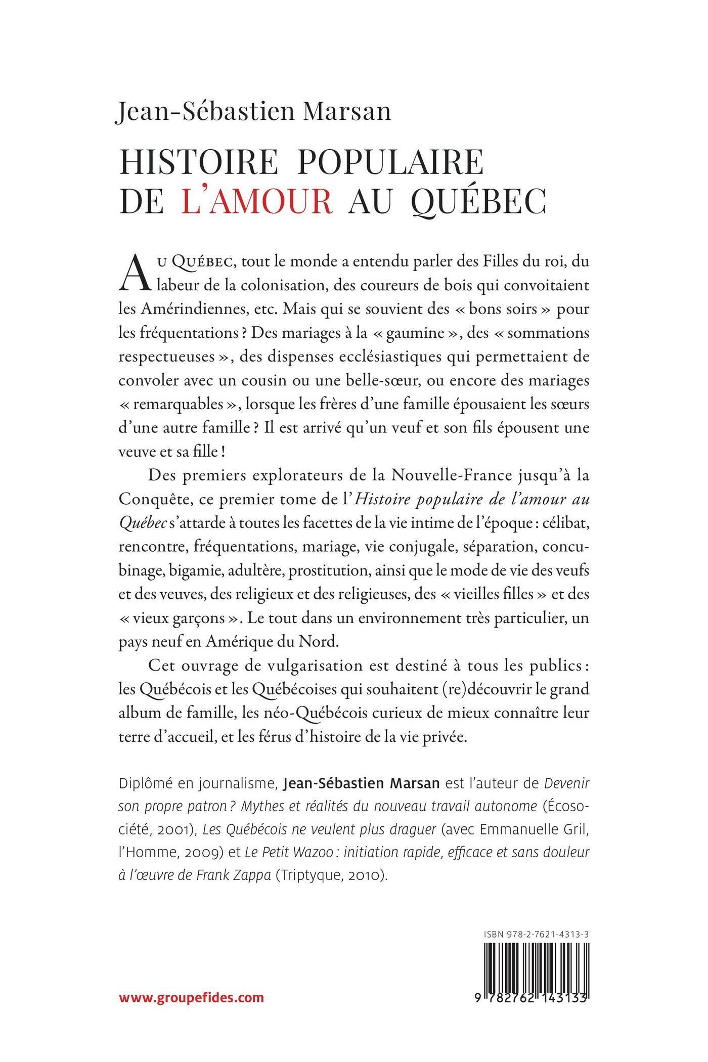 Au Québec, tout le monde a entendu parler des Filles du roi, du labeur de la colonisation, des coureurs de bois qui convoitaient les Amérindiennes, etc. Mais qui se souvient des « bons soirs » pour les fréquentations? Des mariages à la «gaumine», des «sommations respectueuses», des dispenses ecclésiastiques qui permettaient de convoler avec un cousin ou une belle-soeur, ou encore des mariages «remarquables», lorsque les frères d’une famille épousaient les soeurs d’une autre famille? Il est arrivé qu’un veuf et son fils épousent une veuve et sa fille!Des premiers explorateurs de la Nouvelle-France jusqu’à la Conquête, ce premier tome de l’Histoire populaire de l’amour au Québec s’attarde à toutes les facettes de la vie intime de l’époque: célibat, rencontre, fréquentations, mariage, vie conjugale, séparation, concubinage, bigamie, adultère, prostitution, ainsi que le mode de vie des veufs et des veuves, des religieux et des religieuses, des «vieilles filles» et des «vieux garçons». Le tout dans un environnement très particulier, un pays neuf en Amérique du Nord.Cet ouvrage de vulgarisation est destiné à tous les publics: les Québécois et les Québécoises qui souhaitent (re)découvrir le grand album de famille, les néo-Québécois curieux de mieux connaître leur terre d’accueil, et les férus d’histoire de la vie privée.