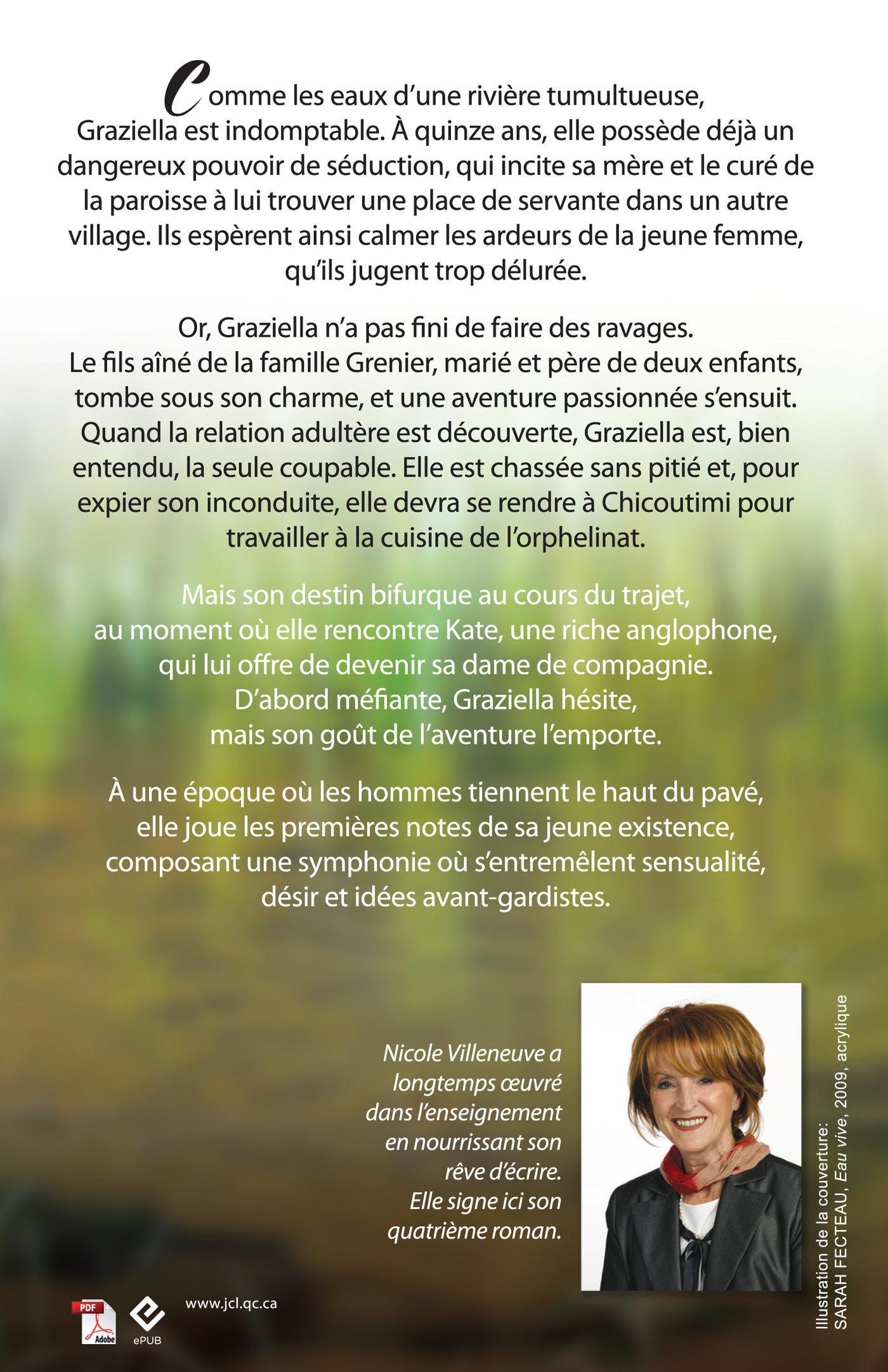 1913 : La jeune Graziella démontre davantage d'ambition que ce qui était permis à une adolescente de seize ans à cette époque. Sa mère, qui la juge trop volontaire et dérangeante, de connivence avec le curé qui ne tolère aucune conduite scandaleuse dans sa paroisse, la fait engager comme servante chez les Grenier, une famille bourgeoise de Saint-Jean-Baptiste. Mais dès l'année suivante, elle est congédiée par ses employeurs pour avoir prétendument séduit l'ainé de la famille. Dans le train qui l'amène vers Chicoutimi, la vie de la jeune fille prendra une direction différente grâce à la rencontre de Kate Davis. Sous la tutelle de sa nouvelle bienfaitrice, protestante de surcroit, Graziella aura l'opportunité de frayer parmi la haute gomme de Chicoutimi, cette ville qui bouillonne alors à tous les points de vue. Comment sera reçue la jeune femme au passé si lourd par ces hauts placés qui font l'orgueil de cette localité que l'on qualifie alors de Reine du nord?