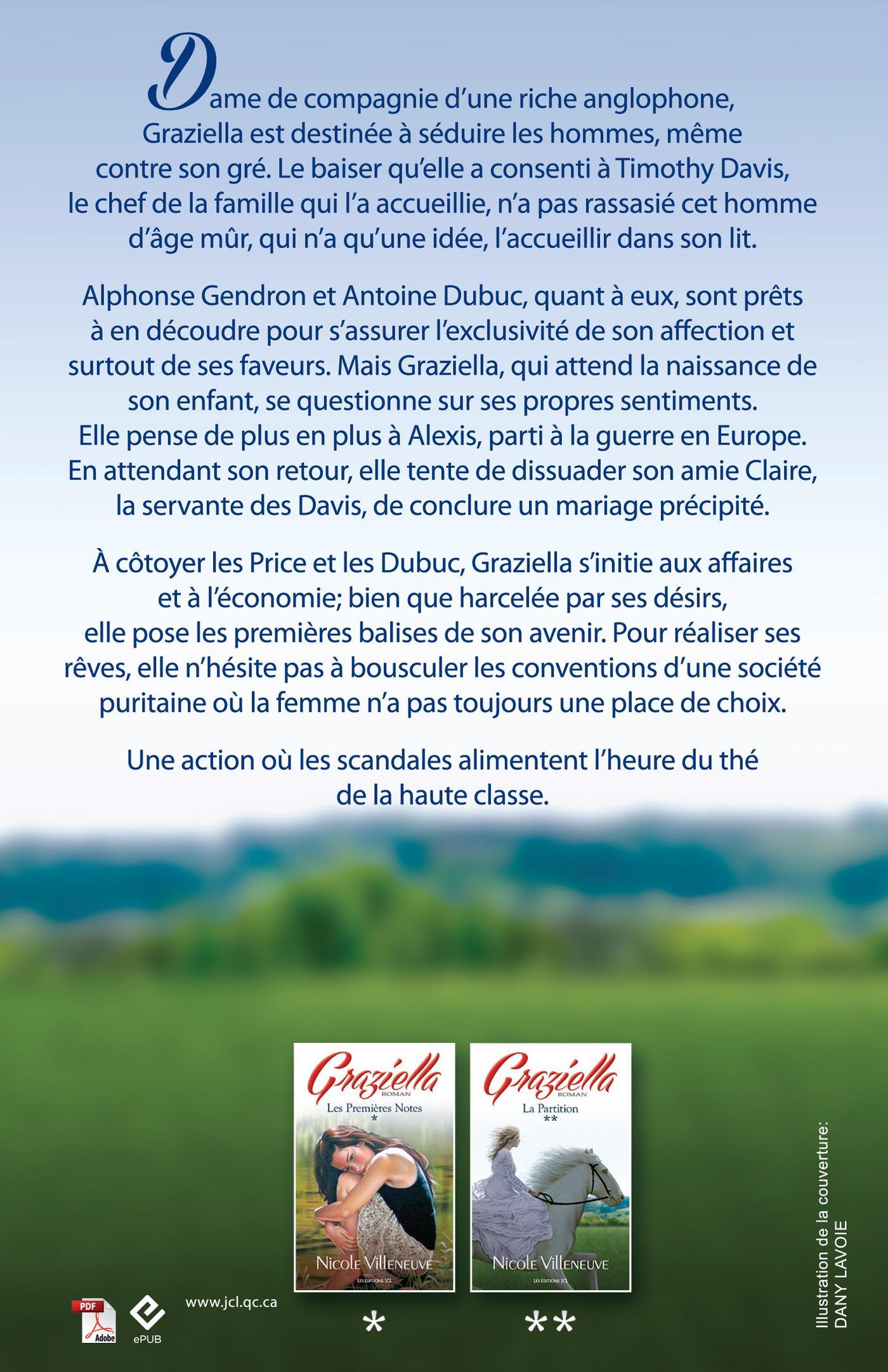 Chicoutimi, novembre 1914.À une époque où les industries reliées à la forêt tournent à plein régime, Graziella, une jeune fille aventureuse et surtout ambitieuse, réussit à s'introduire dans les familles les plus en vues de Chicoutimi. Courtisée par deux jeunes hommes appartenant à la classe aisée, elle ne se laisse pas influencer par leurs belles promesses. Enceinte, elle mettra au monde son fils, puis tournera son attention vers le jeune Alexis, l'un des premiers fantassins à quitter le Saguenay pour l'Angleterre au début de la Première Guerre mondiale. A-t-elle relégué au second plan son rêve d'ouvrir à Chicoutimi une boutique de vêtements pour dames, à l'heure où les scandales les plus croustillants alimentent l'heure du thé de la haute société?À travers les trahisons, les déceptions, les idées préconçues ainsi que les principes véhiculés par la société et l'Église, Graziella ne peut que se laisser porter par cet instinct qui la pousse sans cesse à aller de l'avant. Cette motivation a porté, à elle seule, l'auteure Nicole Villeuve tout le long de la rédaction de ce second tome d'une trilogie.