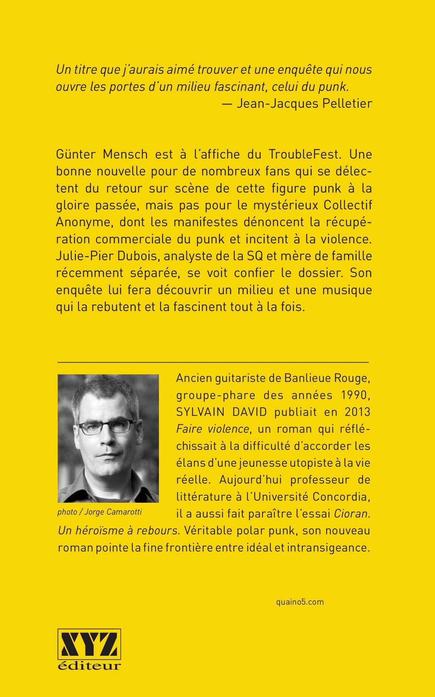 Alain Roy, Julie Mazzieri, Mathieu Bélisle, Julia Chamard-Bergeron, David Dorais, Simon Brousseau, Gabrielle Giasson-Dulude, Antonin Mireault-Plante, Mauricio Segura, Lucie Robert, Patrice Reytier, Marie-Anne Letarte, Heather O'Neill, Vincent Lambert, Geneviève Letarte, Michel Biron, Marie-Andrée Lamontage, Robert Levesque, Georges Privet, Sylvain David, Stanley Péan, Patrick Nicol