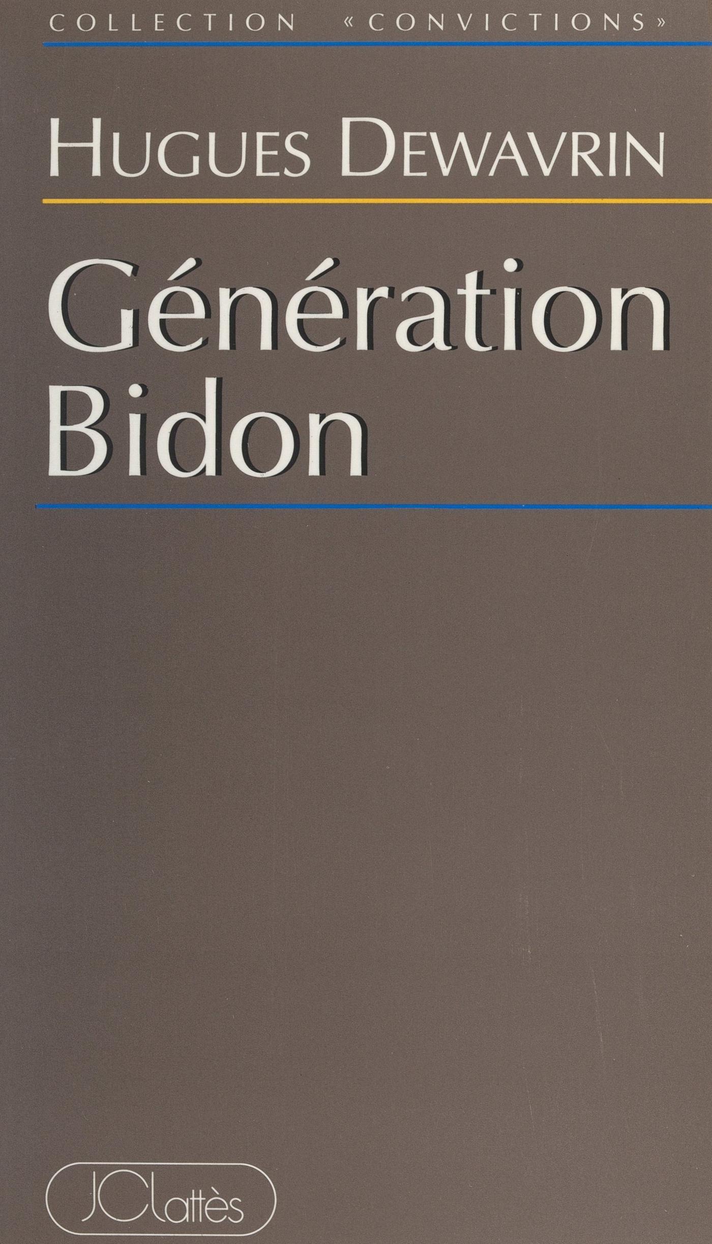 Compagnon de route, serviteur et fou du roi, un jeune libéral devenu grand feuillette l’album d’une drôle de famille, celle des quadras de la droite où figurent ses « amis » parvenus au pouvoir. Et de s’étonner. Eux qui, vingt ans plus tôt, défendaient le camp de la liberté se retrouvent en pleine panne idéologique. Et de critiquer. Eux qui voulaient tout changer sont allés de dérives en projets avortés, de rénovation en néo-rénovation, se sont adonnés au marketing électoral, se sont abandonnés au tout médiatique. Et de diagnostiquer. Bidon, c’est une génération bidon celle qui a pris le pouvoir en viager et à qui il ne reste plus qu’à se réinventer. A moins de voir la droite périr sous les coups de son ultime et désormais unique ennemi, elle-même. Car si Hugues Dewavrin dissèque le mythe de la génération morale, dénonce les dictatures du prêt-à-porter idéologique, s’insurge contre les nouveaux poncifs – l’écologie, la nation – il ne se prétend pas un Saint-Simon fin de siècle, frappé d’une crise existentielle. Bidon, il avoue l’être pour avoir été mêlé de près à beaucoup d’égarements dont il dresse le récit exemplaire. Mais, voilà ! Assez ! Arrêt moteur. Arrêt Image. Il faut en revenir à la citoyenneté et à la République. Un essai, corrosif, qui rompt avec l’ambiante courtoisie.