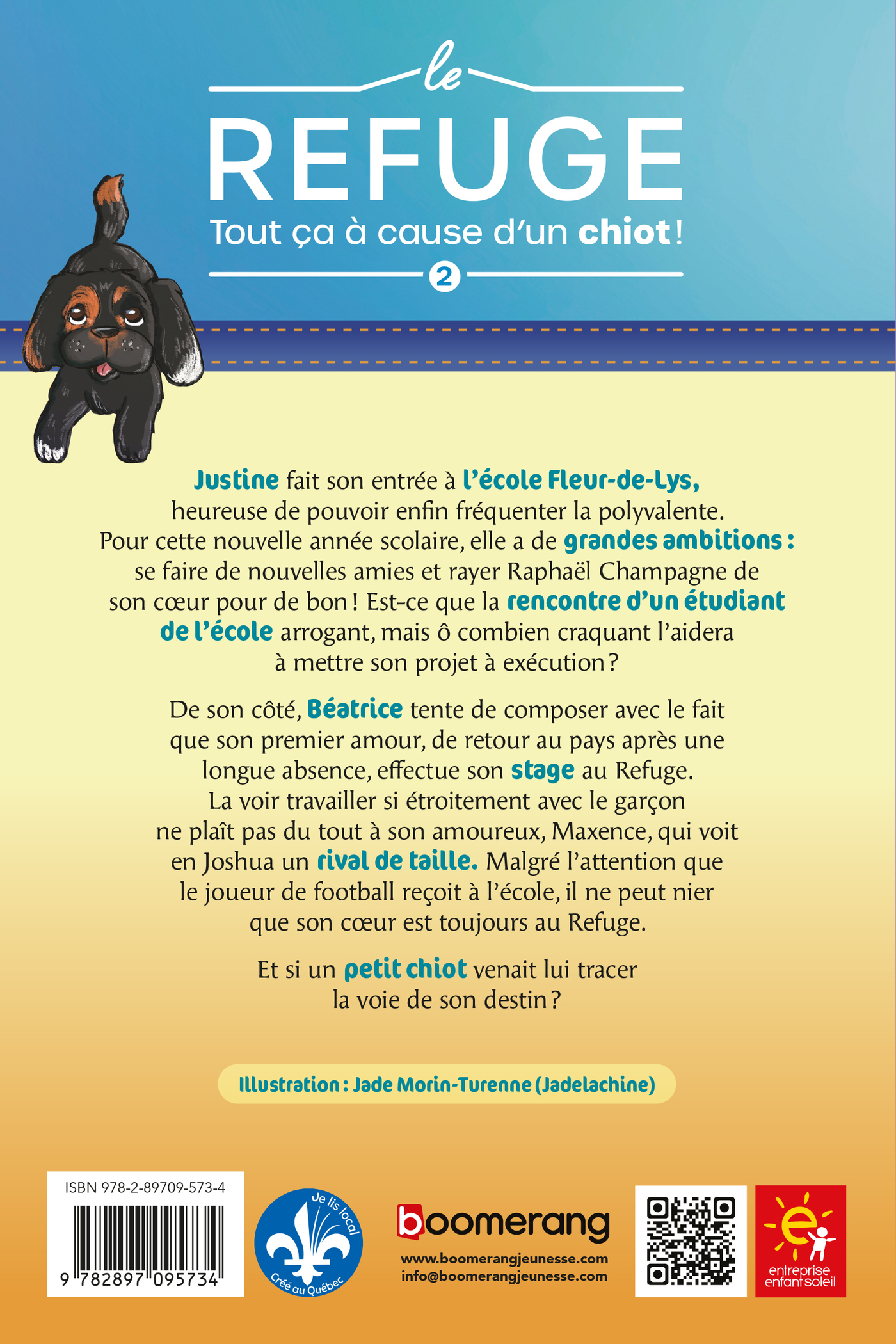 Justine fait son entrée à l’école Fleur-de-Lys, heureuse de pouvoir enfin fréquenter la polyvalente. Pour cette nouvelle année scolaire, elle a de grandes ambitions : se faire de nouvelles amies et rayer Raphaël Champagne de son cour pour de bon! Est-ce que la rencontre d’un étudiant de l’école arrogant, mais à combien craquant l’aidera à mettre son projet à exécution?De son côté, Béatrice tente de composer avec le fait que son premier amour, de retour au pays après une longue absence, effectue son stage au Refuge. La voir travailler si étroitement avec le garçon ne plaît pas du tout à son amoureux, Maxence, qui voit en Joshua un rival de taille. Malgré l’attention que le joueur de football reçoit à l’école, il ne peut nier que son cœur est toujours au Refuge. Et si un petit chiot venait lui tracer la voie de son destin?