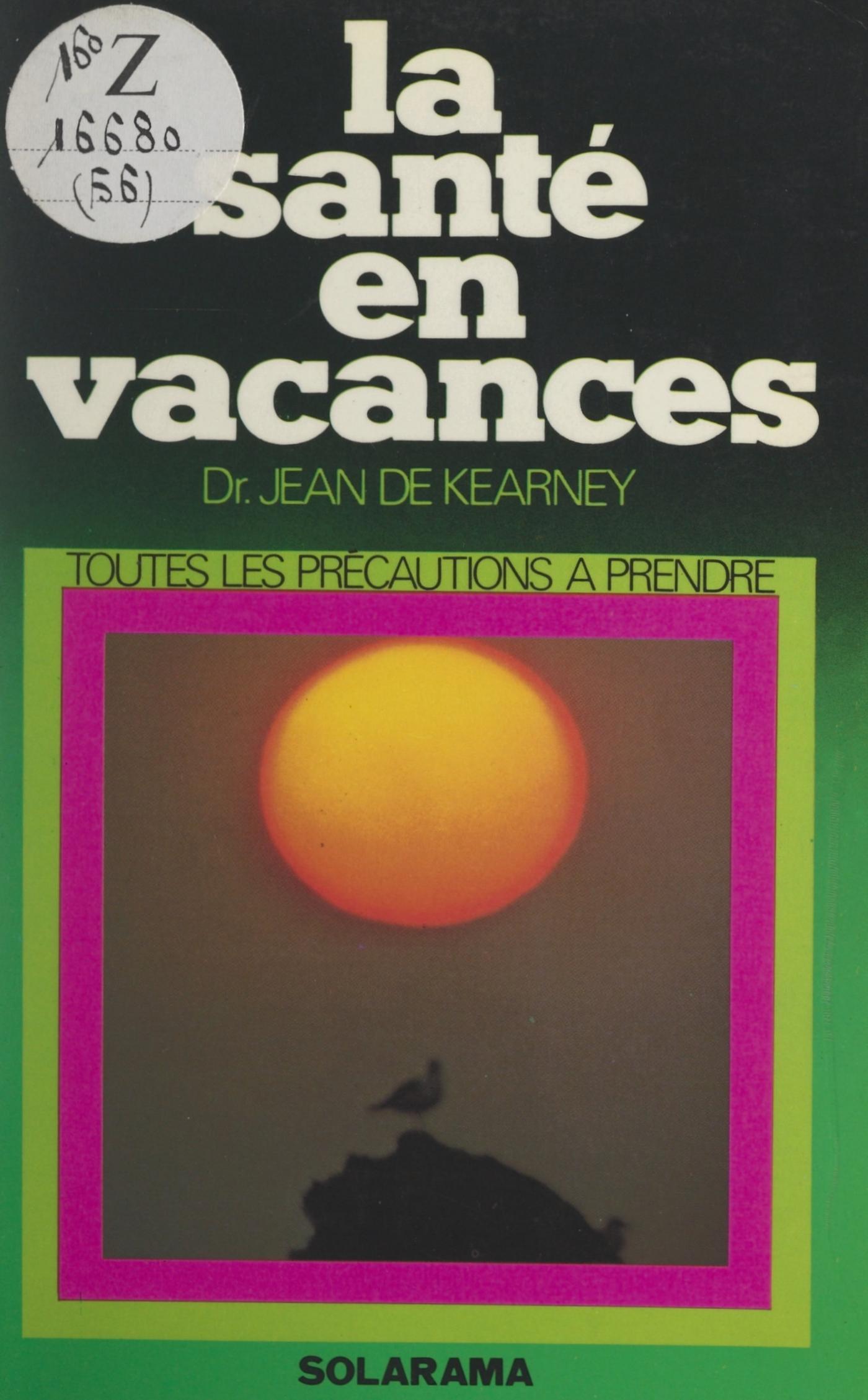 Vacances, loisirs, détente, insouciance, repos, toutes ces joies attendues onze mois, cela veut dire aussi nourritures inhabituelles, coups de soleil, accidents de la route, piqûres de guêpes, noyades, chutes, maladies des pays chauds.Comment prévenir accidents et incidents ? Que faire en cas de morsure de serpent ou devant une intoxication par les fruits de mer ? Pouvez-vous voyager en avion ? Quelles vacances peut prendre la future maman ? Faut-il vacciner le bébé ? Un médecin, le docteur Jean de Kearney, répond à toutes ces questions pour vous aider à faire le plein de santé en vacances.Pierre Gaxotte, de l'Académie française, a écrit la préface de ce guide, et voici ce qu'il en pense : « Que nous dit, en somme, ce livre de sagesse ? Que les vacances sont un changement de vie; qu'il s'agit, en quelques semaines, de se décharger des toxines accumulées pendant onze mois, puis de se recharger en "unités-repos" ; que cette régénération se fera mieux si elle est préparée et progressive ; que c'est un art d'utiliser les loisirs, comme c'est un art de régler son travail... Bonnes vacances et bonne santé à ceux qui partent. Ils sont prévenus et un vacancier prévenu en vaut deux. »