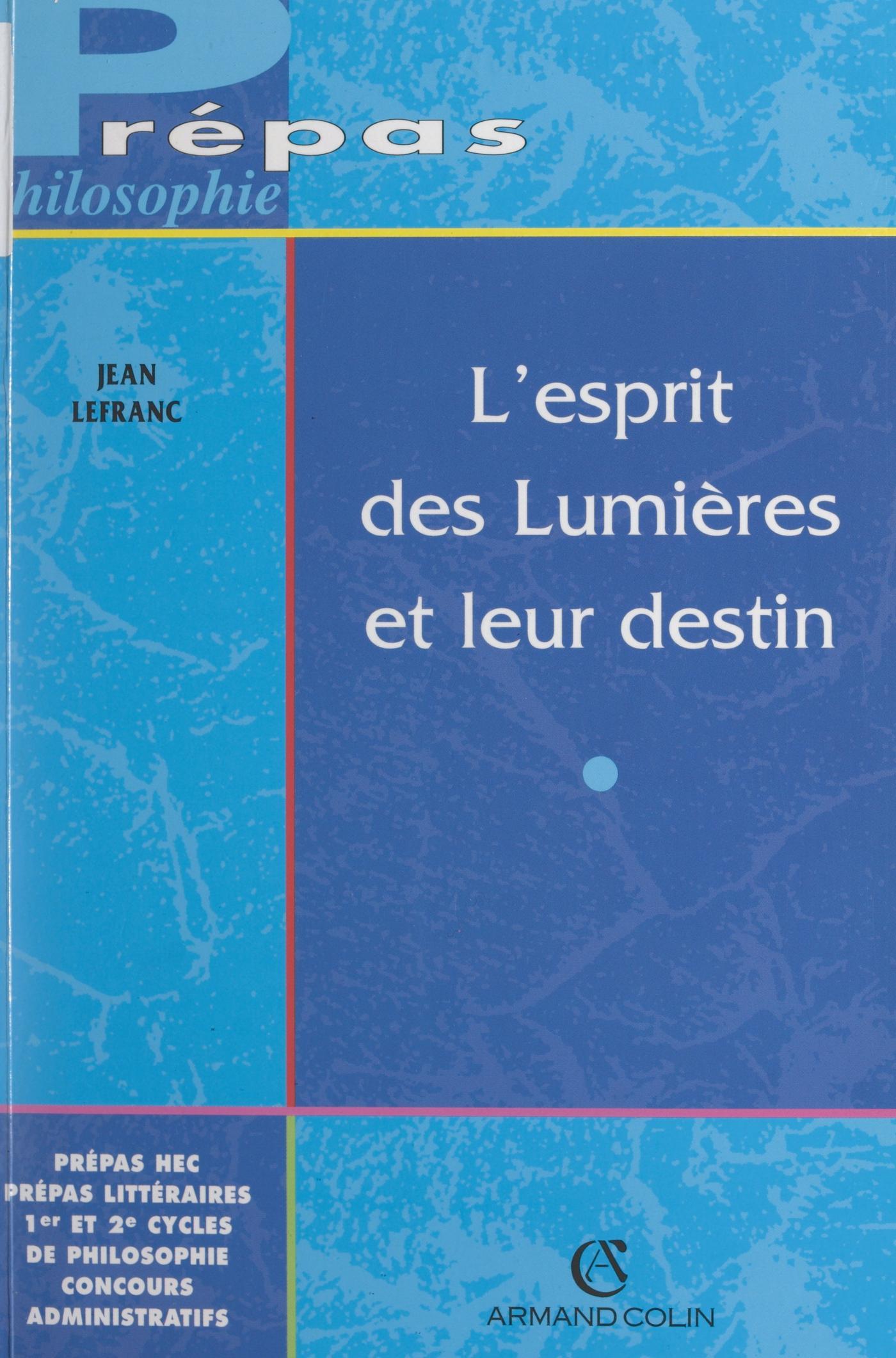Une large destinationEnseignement supérieurClasses préparatoires aux grandes écoles (ENS, ESM Saint-Cyr, HEC, ESCP, ENA).Ier et 2e cycles de philosophie.Préparations aux concours de la Fonction publique CAPES (Histoire, Géographie, Sciences sociales).Agrégation (Histoire, Géographie, Sciences sociales). Concours administratifs.L'auteurJean Lefranc, agrégé de philosophie, maître de conférences honoraire à l'université de Paris- Sorbonne, a une longue expérience des classes préparatoires. Il a été, de 1969 à 1994, président de l'association des professeurs de philosophie.Une approche plurielleUne instrumentation pratiqueUn index, des clés et repères permettant une maîtrise immédiate des notions et des auteurs.Une problématique soutenueDans quelle mesure la modernité est-elle l'héritière des Lumières ? Libéraux et révolutionnaires se sont réclamés diversement de ce courant et des penseurs "post-modernes" pourraient aisément entonner le refrain éc'est la faute à Voltaire, c'est la faute à Rousseau". Sans doute y a-t-ile là simplification abusive.Raison et nature sont des notions clés. Mais l'ouvrage montre qu'il a différents types de rationalité qui s'opposent ou se combinent selon que l'on s'inspire de Descartes ou de Newton, de Locke ou de Leibniz. Quant à la nature, les grands auteurs des Lumières n'ont cessé d'en débattre, au sujet de la religion naturelle, ou du beau naturel. Ces débats restent encore les nôtres, pour une large part.L'étude s'efforce de dégager l'unité d'un esprit des Lumières qui se caractérise par l'exercice de la rationalité critique et la conviction que la vérité, la vertu et le bonheur vont de pair.Un outil didactique et préparatoireUn cours structuré regroupant l'essentiel des savoirs.Une liste sélective des sujets proposés ou susceptibles de l'êtreDes sujets traitésProblématiques, organisation des acquis.Les références bibliographiques essentiellesRenvois à la bibliographie fondamentale.