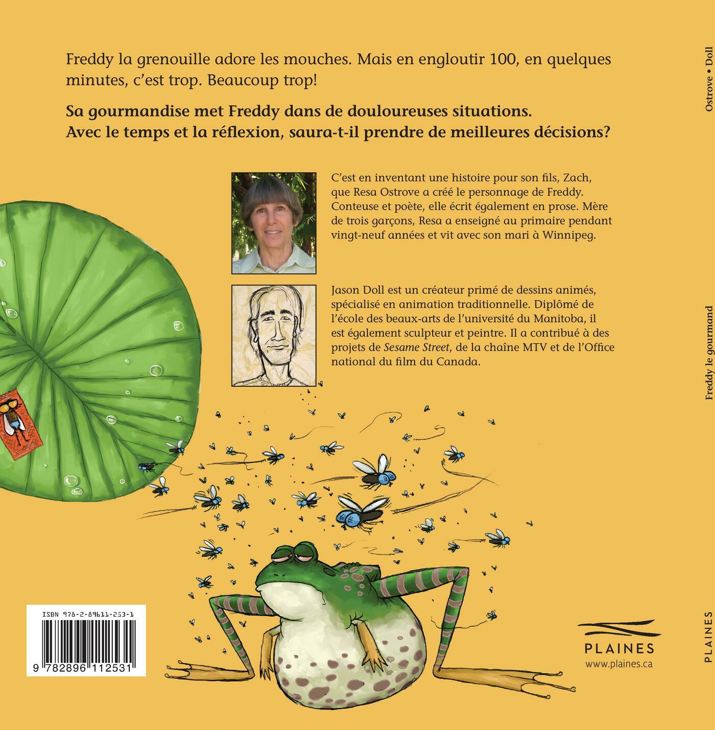 AccueilFreddy le gourmandFreddy la grenouille adore les mouches. Mais en engloutir 100, en quelques minutes, c’est trop. Beaucoup trop!Sa gourmandise met Freddy dans de douloureuses situations.Avec le temps et la réflexion, saura-t-il prendre de meilleures décisions?Lorsque la gourmandise de Freddy le rend presque malade, il ne se contente pas de rester sur son nénuphar à se lamenter, mais cherche activement une solution à son mal-être. C’est vers ses amis qu’il se tourne en quête d’une idée pour se débarrasser de l’armée de bulles de gaz qui lui torture l’estomac. Pleins de bonne volonté, ceux-ci lui suggèrent successivement des solutions adaptées à leur espèce, entrainant Freddy la grenouille dans toutes sortes de situations cocasses.Mais au-delà de ses problèmes de gaz qui feront glousser les enfants, l’histoire de Freddy amène le lecteur à réfléchir aux choix qu’il fait, leurs conséquences et les leçons à en tirer, qui nous aident à grandir. Et la fin, laissée en suspens sur un Freddy affamé entouré d’appétissantes mouches, ouvre les portes de l’imagination, mais surtout de la réflexion et de la discussion.