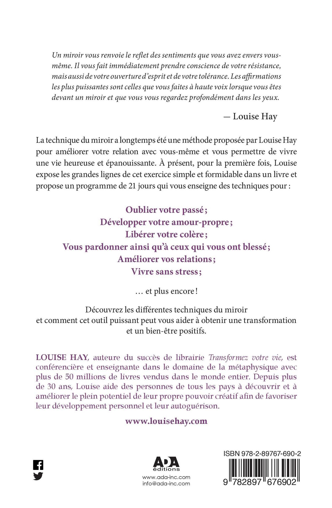 La technique du miroir a longtemps été une méthode proposée par Louise Hay pour améliorer votre relation avec vous-même et vous permettre de vivre une vie heureuse et épanouissante. À présent, pour la première fois, Louise expose les grandes lignes de cet exercice simple et formidable dans un livre et propose un programme de 21 jours qui vous enseigne des techniques pour:Oublier votre passé;Développer votre amour-propre;Libérer votre colère;Vous pardonner et pardonner ceux qui vous ont blessé;Améliorer vos relations;Vivre sans stress; … et plus encore !