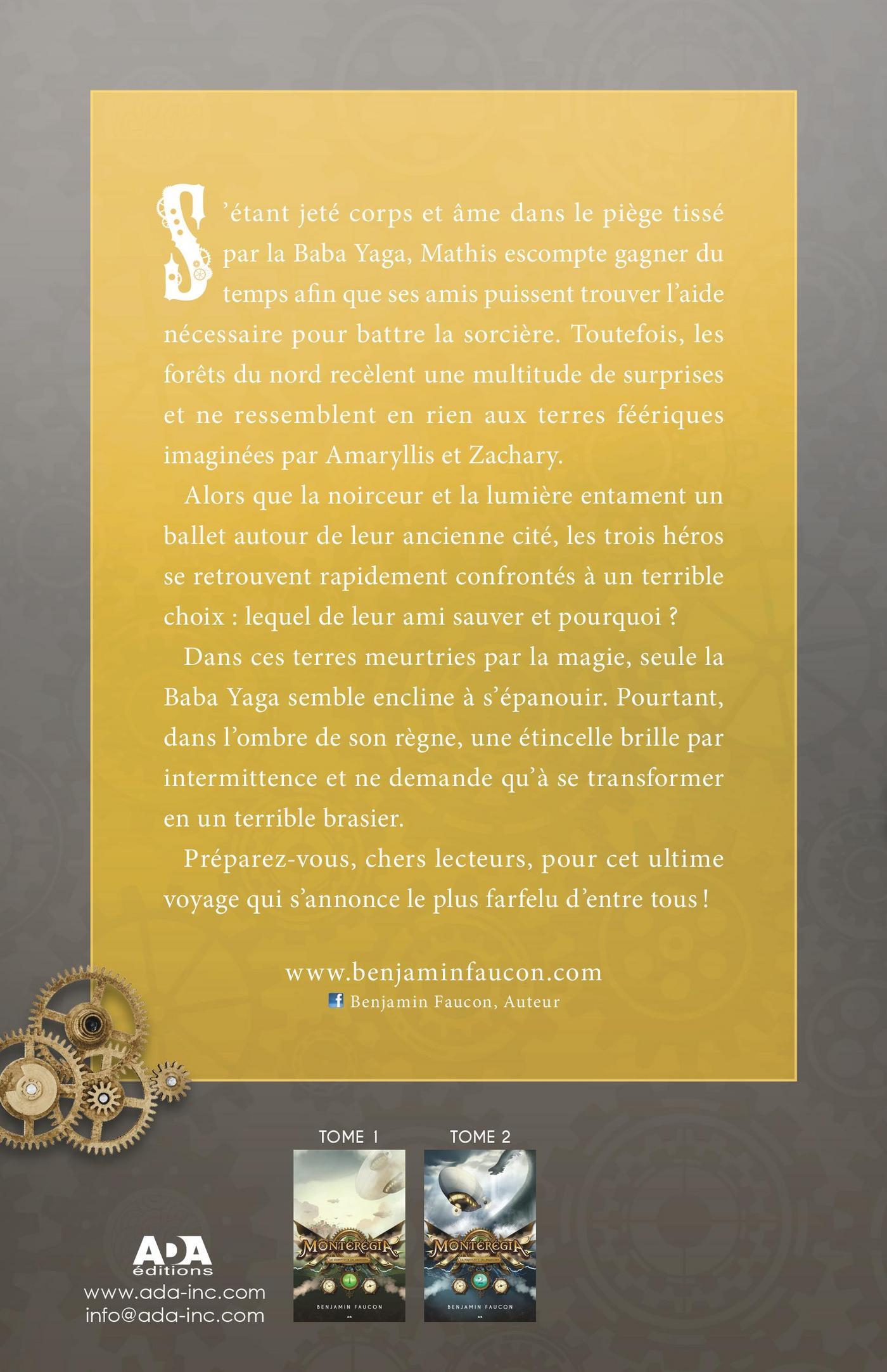 S’étant jeté corps et âme dans le piège tissé par la Baba Yaga, Mathis escompte gagner du temps afin que ses amis puissent trouver l’aide nécessaire afin de battre la sorcière. Toutefois, les forêts du nord recèlent une multitude de surprises et ne ressemblent en rien aux terres féériques imaginées par Amaryllis et Zachary.Alors que la noirceur et la lumière entament un ballet autour de leur ancienne cité, les trois héros se retrouvent rapidement confrontés à un terrible choix: lequel de leur ami sauver et pourquoi?Dans ces terres meurtries par la magie, seule la Baba Yaga semble encline à s’épanouir. Pourtant, dans l’ombre de son règne, une étincelle brille par intermittence et ne demande qu’à se transformer en unterrible brasier. Préparez-vous, chers lecteurs, pour cet ultime voyage qui s’annonce le plus farfelu d’entre tous!
