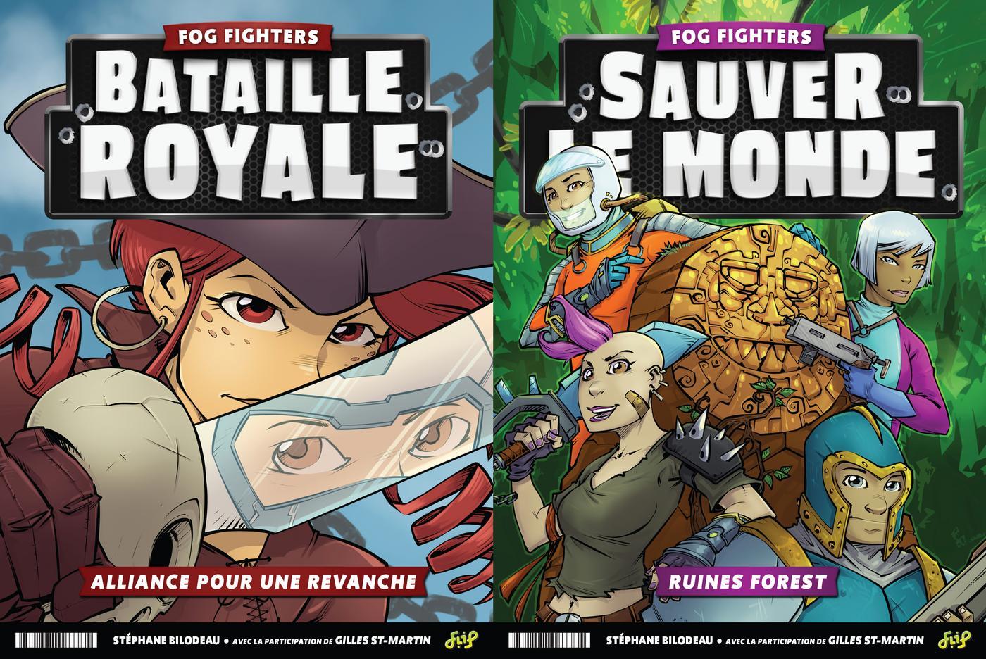 LIVRE 1___Bataille Royale – Alliance pour une revancheL’exploratrice Spark, ancienne capitaine pirate, est une combattante au caractère de cactus fleuri. Elle n’accepte pas la défaite et, avec un allié de circonstance, elle compte bien prendre une revanche mémorable. Son unique objectif est la Victoire Royale!___LIVRE2___Sauver le Monde – Ruines forestL’incomparable Strike, l’éclaireuse Punky, le guerrier Axe et l’ingénieur Cosmo sont les combattants désignés pour une mission au coeur de la jungle. La peur n’a pas sa place face aux dangers et aux mystères de cet enfer vert. L’enjeu est de sauver le monde!