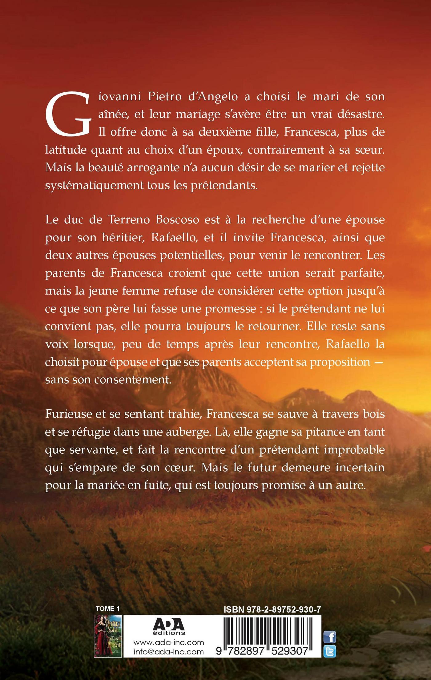 Giovanni Pietro d’Angelos a choisi le mari de son aînée, et leur mariage s’avère être un vrai désastre. Il offre donc à sa deuxième fille, Francesca, plus de latitude quant au choix d’un époux, contrairement à sa soeur. Mais la beauté arrogante n’a aucun désir de se marier et rejette systématiquement tous les prétendants.Le duc de Terreno Boscoso est à la recherche d’une épouse pour son héritier, Rafaello, et il invite Francesca, ainsi que plusieurs autres mariées potentielles, pour venir le rencontrer. Les parents de Francesca croient que cette union serait parfaite, mais la jeune femme refuse de considérer cette option jusqu’à ce que son père lui fasse une promesse: si le prétendant ne lui convient pas, elle pourra toujours le retourner. Elle reste sans voix lorsque, peu de temps après leur rencontre, Rafaello la choisit pour épouse et que ses parents acceptent sa proposition — sans son consentement.Furieuse et se sentant trahie, Francesca se sauve à travers bois et se réfugie dans une auberge. Là, elle gagne sa pitance en tant que servante, et fait la rencontre d’un prétendant improbable qui s’empare de son coeur. Mais le futur demeure incertain pour la mariée en fuite, qui est toujours promise à un autre.