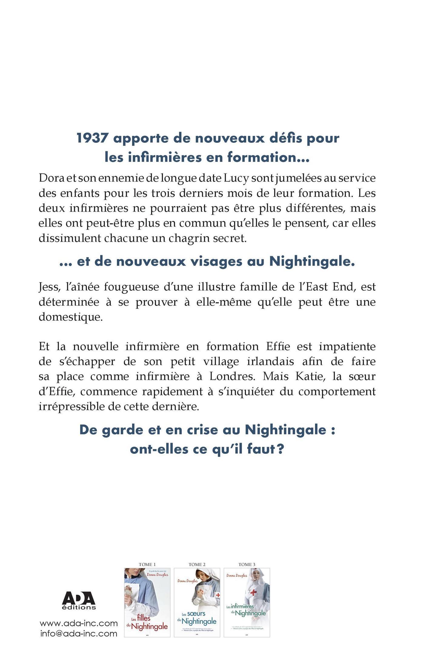 1937 apporte de nouveaux défis pourles infirmières en formation…Dora et son ennemie de longue date Lucy sont jumelées au service des enfants pour les trois derniers mois de leur formation. Les deux infirmières ne pourraient pas être plus différentes, mais elles ont peut-être plus en commun qu’elles le pensent, car elles dissimulent chacune un chagrin secret.... et de nouveaux visages au Nightingale.Jess, l’aînée fougueuse d’une illustre famille de l’East End, est déterminée à se prouver à elle-même qu’elle peut être une domestique.Et la nouvelle infirmière en formation Effie est impatiente de s’échapper de son petit village irlandais afin de faire sa place comme infirmière à Londres. Mais Katie, la soeur d’Effie, commence rapidement à s’inquiéter du comportement irrépressible de cette dernière.De garde et en crise au Nightingale:ont-elles ce qu’il faut?